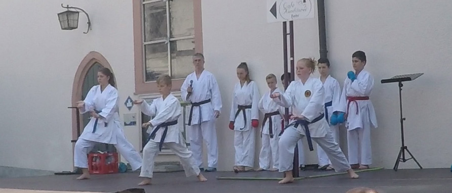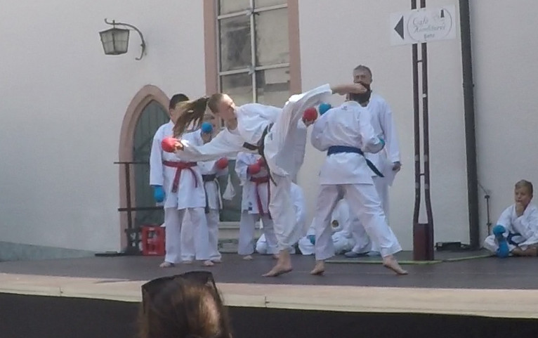 Es war heiß, richtig heiß, diesmal beim Stadtfest in Wiesloch. Bei strahlendem Sonnenschein ging in der Innenstadt von Wiesloch vom 03.-05.07.2015 die Post ab. Auch in diesem Jahr war das Karate Team der TSG wieder mit dabei. Am Sonntag stellten die jungen Karateka Karate als Sport vor. Bereits im vergangenen Jahr wurde dem Publikum demonstriert, wie die Grundlagen erarbeitet werden. Diesmal setzte das Team einen drauf.