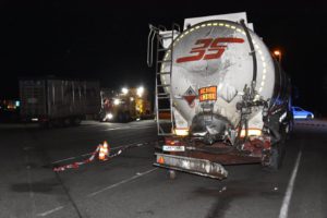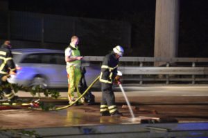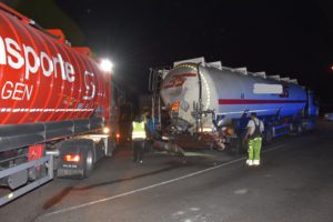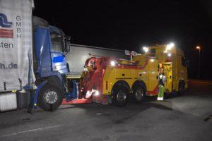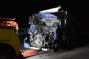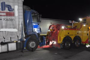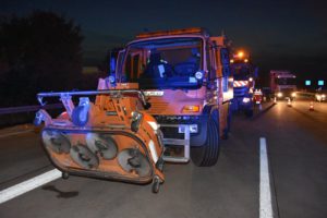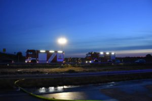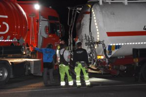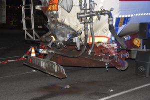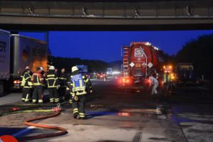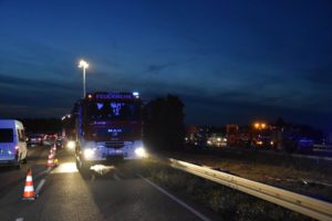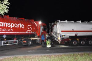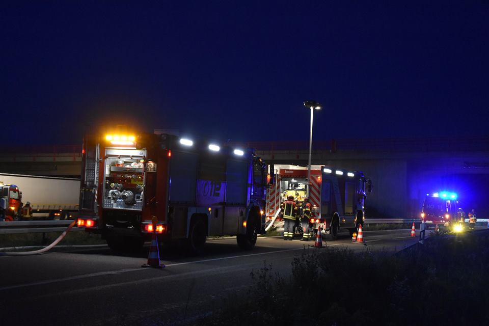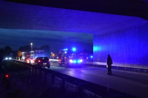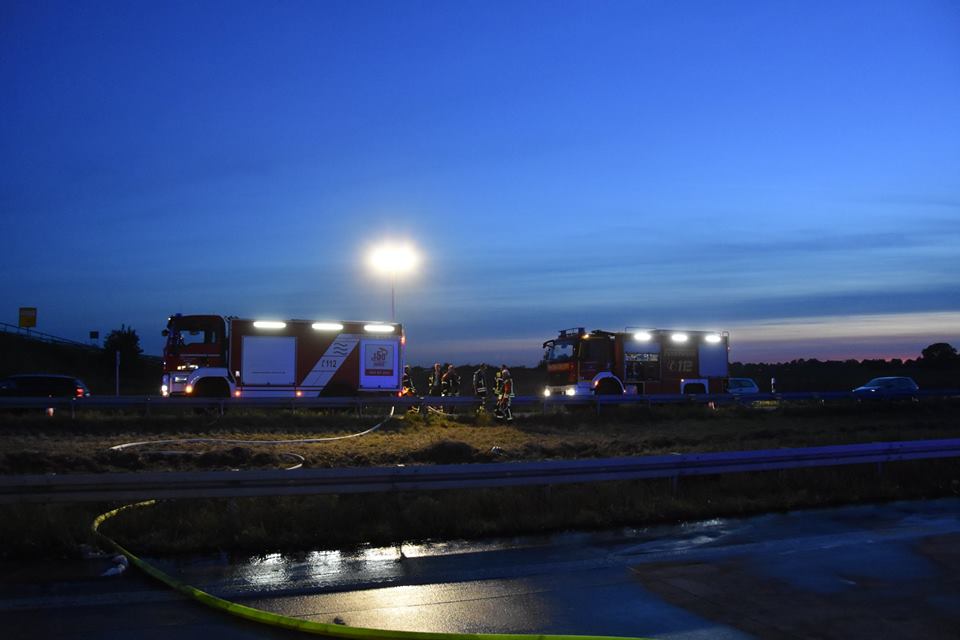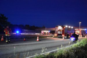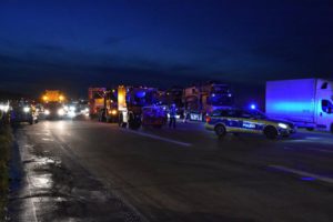Bei dem Auffahrunfall auf der Autobahn war auch ein Silo-Sattelzug beteiligt. Dieser hatte Braunkohlestaub geladen. Durch den Unfall wurde das Silo beschädigt und der Staub trat aus. Nach Einschätzung der Feuerwehr bestand bis zur Bergung des Ladeguts Explosionsgefahr.