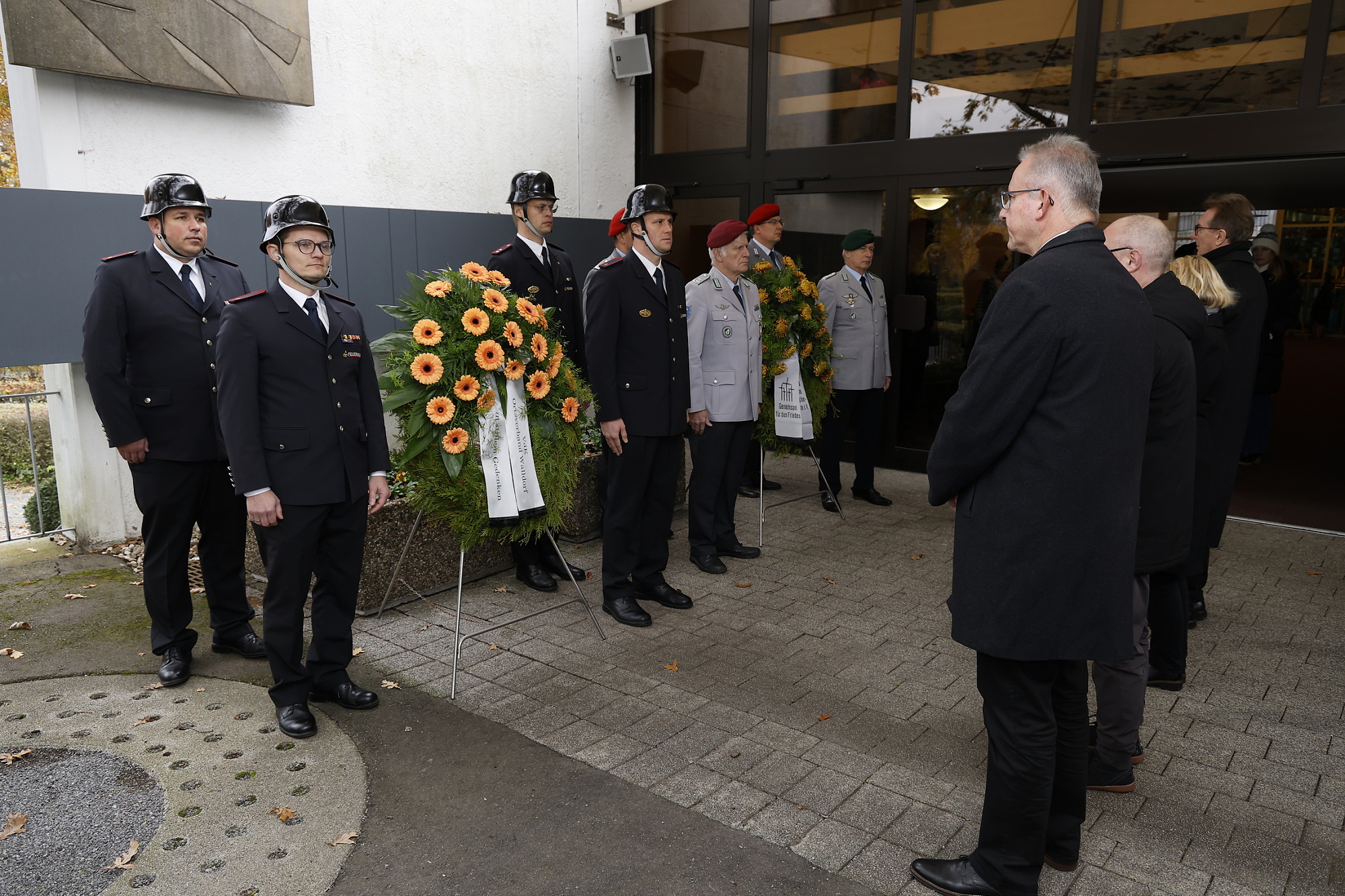 Musikalisch umrahmt wird die Gedenkfeier durch Beiträge des Evangelischen Posaunenchors und der Constantia Walldorf. Die Freiwillige Feuerwehr und die Reservistenkameradschaft halten die Ehrenwache.
