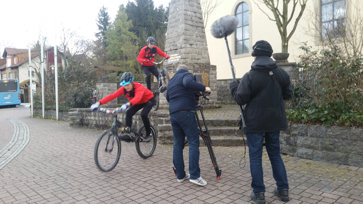 Reporterin Aita Koha und ihr Team trafen sich mit den Mitgliedern des MSC in Schatthausens  Ortsmitte, dort zeigten die beinen Vizeweltmeister was sie so drauf haben.