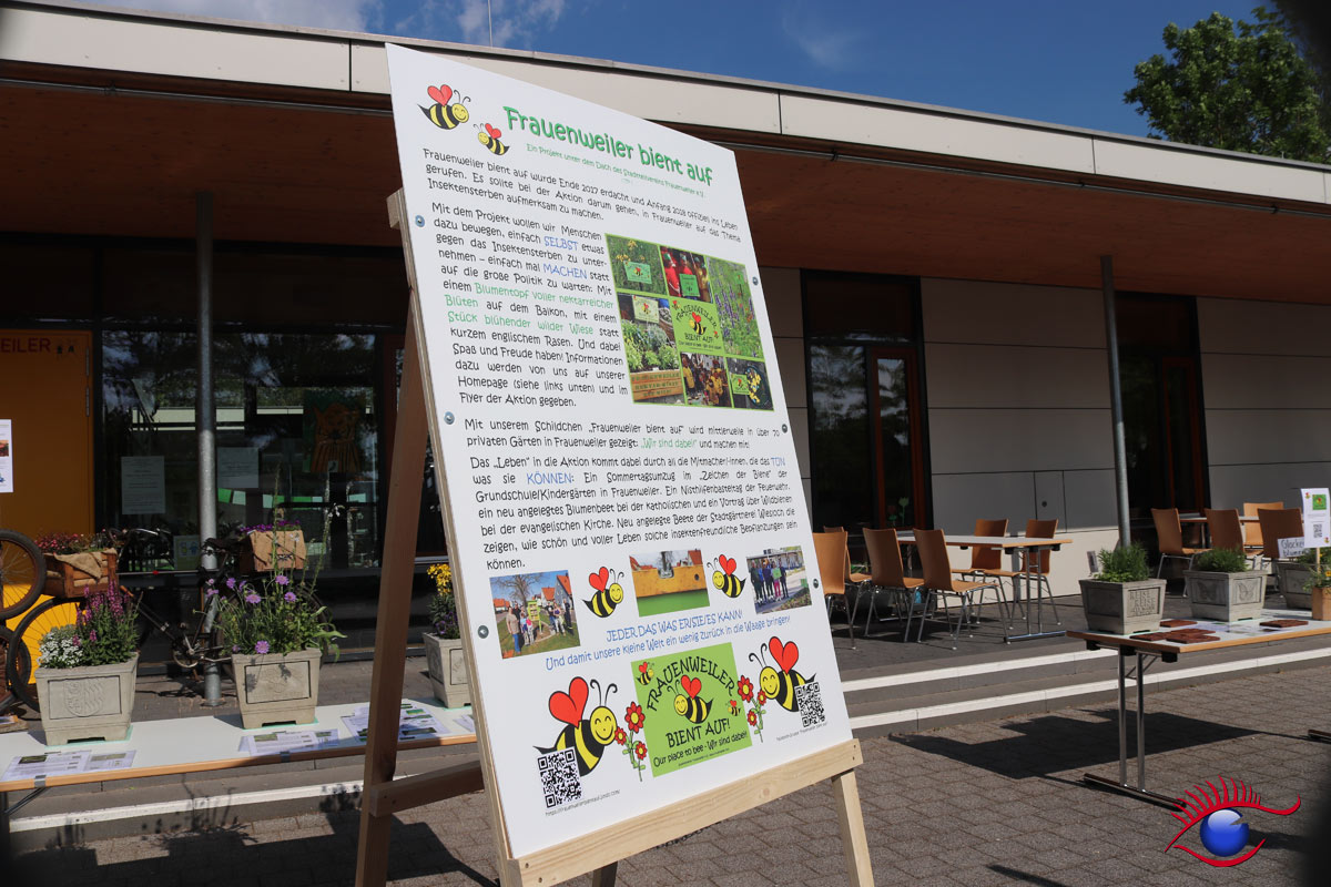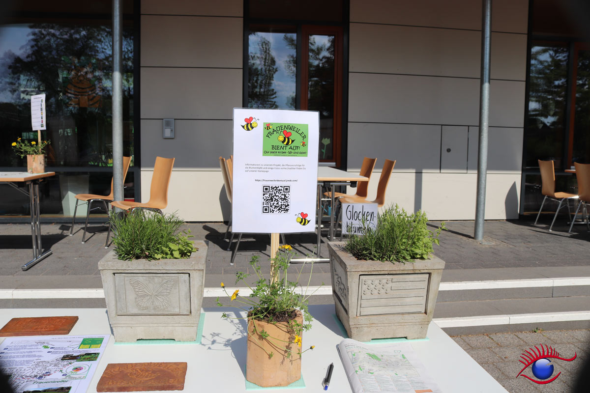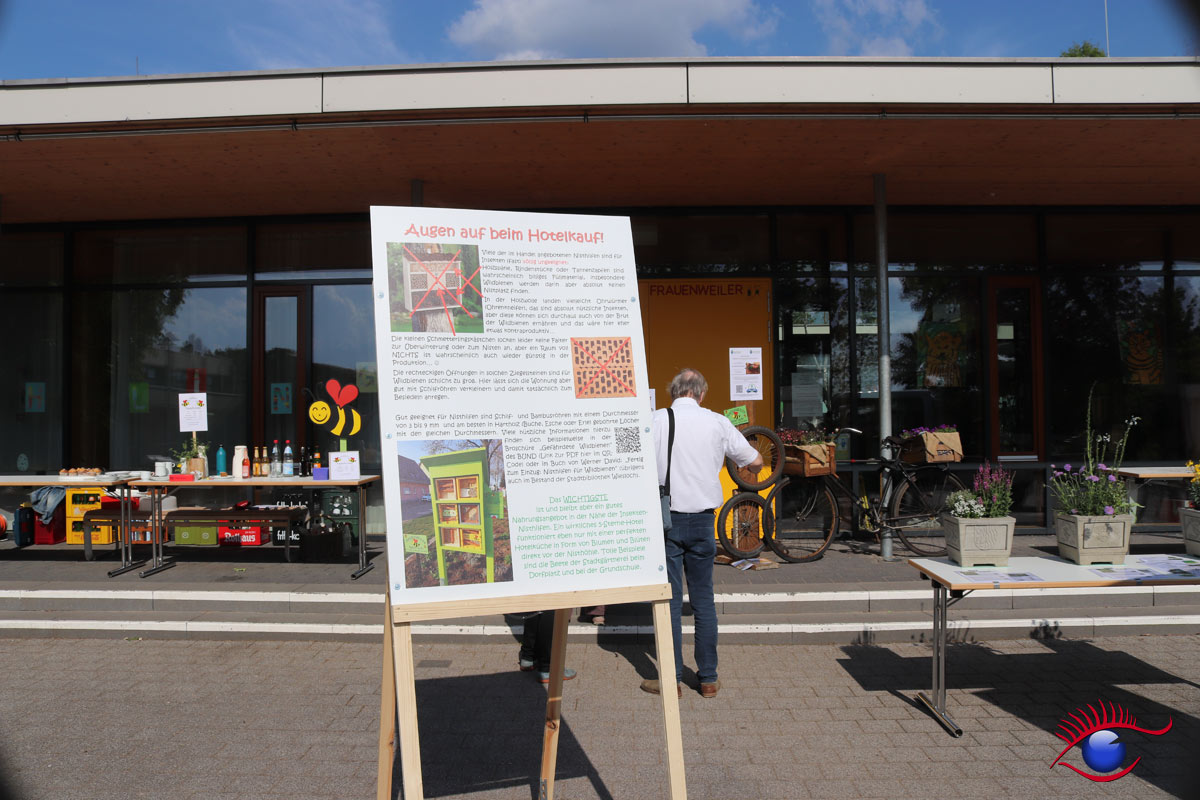 Vor der Grundschule stand alles unter dem Thema „Frauenweiler bient auf“. Das Projekt wurde vorgestellt und man konnte auch insektenfreundliche Blühstauden erwerben.