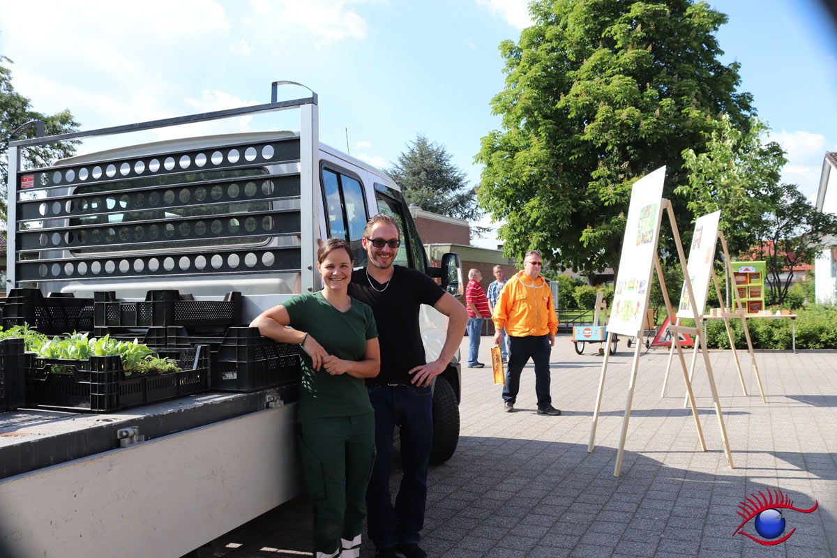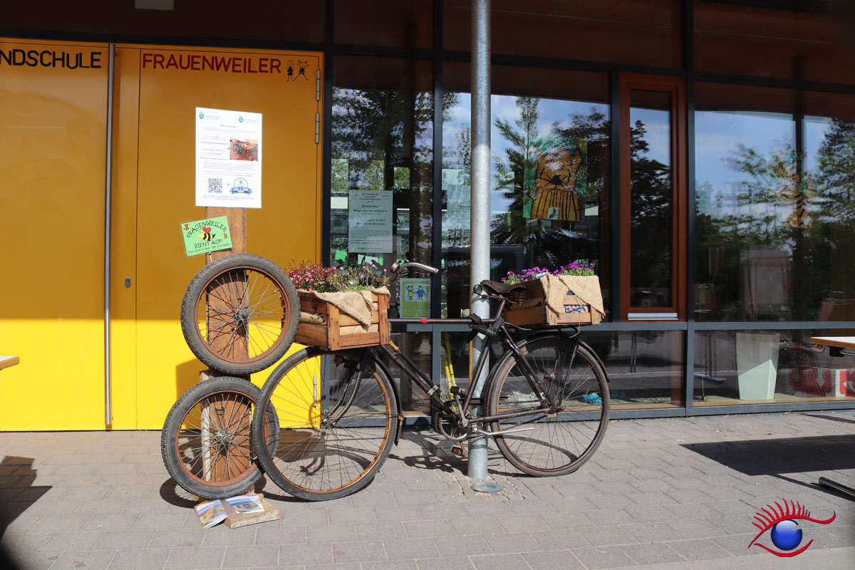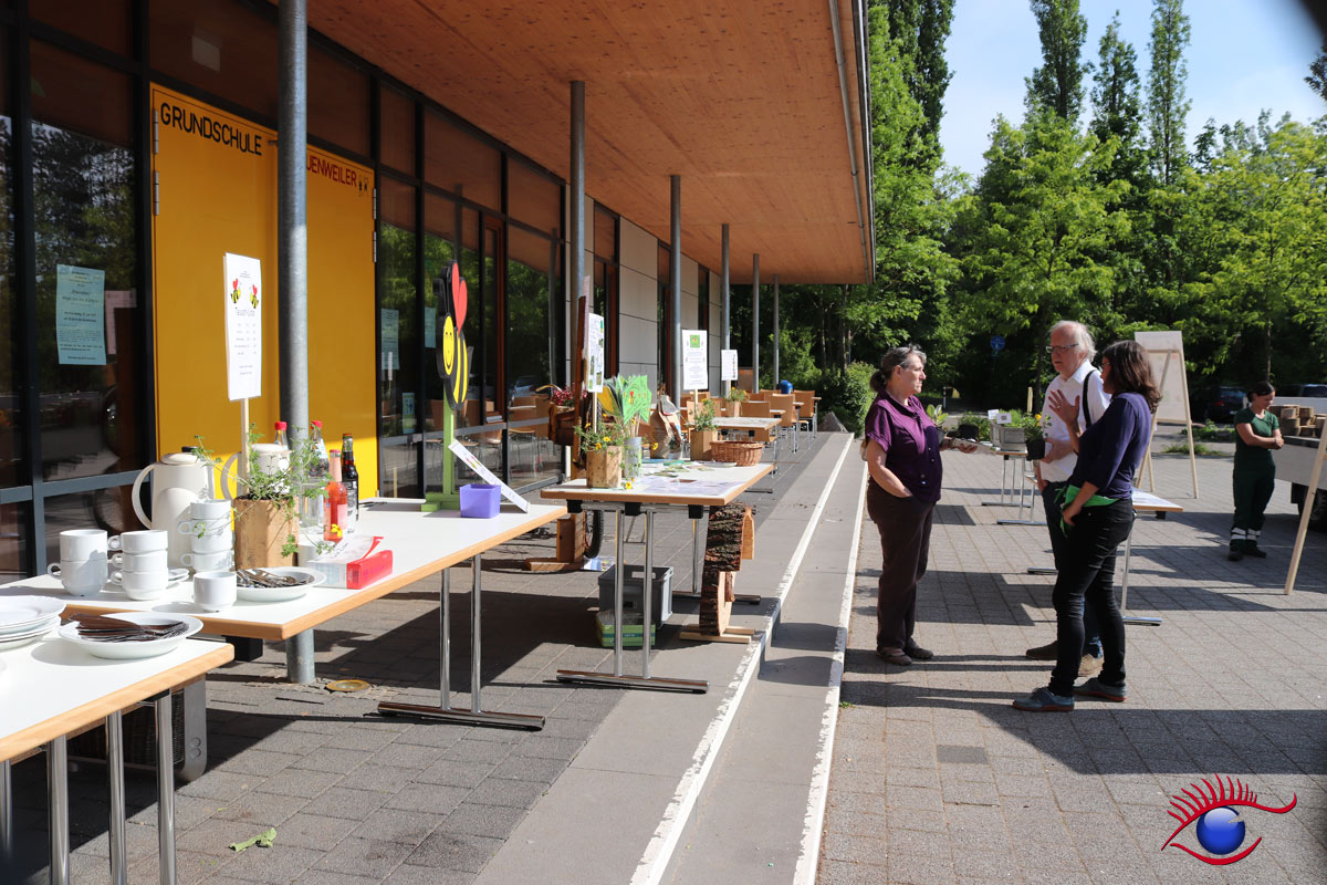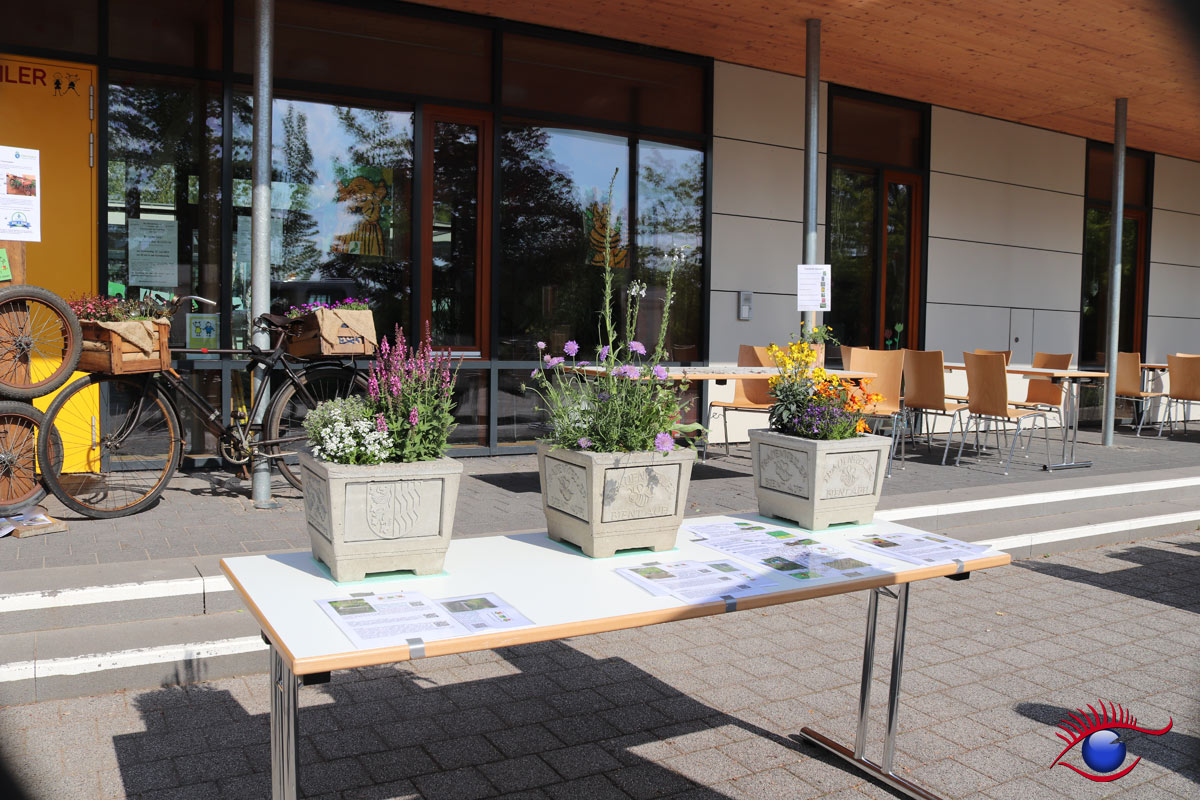 Vor der Grundschule stand alles unter dem Thema „Frauenweiler bient auf“. Das Projekt wurde vorgestellt und man konnte auch insektenfreundliche Blühstauden erwerben.