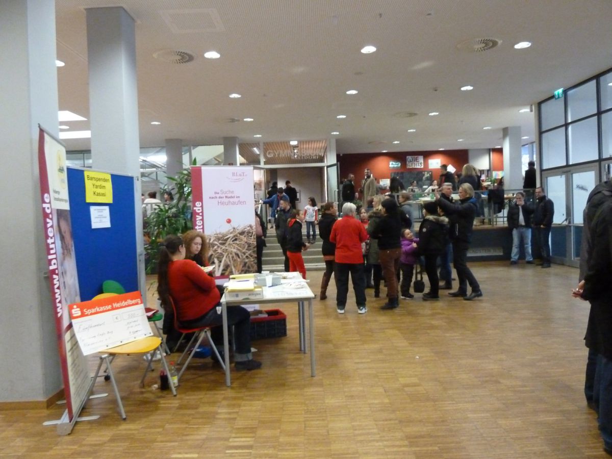 Viele türkische Mitbürger sorgten für ein reichhaltiges Büfett mit warmem Mittagessen, Kleinigkeiten zum Knabbern sowie Kuchen und Kaffee, so dass sich alle Spender nach der Blutentnahme stärken konnten und sich bei angeregten Gesprächen in der Mensa des Schulzentrums unterhielten.