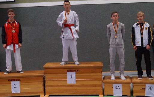 Tim-Luka, der sich noch von den Folgen eines Fahrrad Unfalls erholte, startete bei den Schülern u12, -38kg, verhalten in das Turnier. Nach dem 1:2 im ersten Kampf, steigerte er sich über ein 0:0 hin zu 4:1, 3:2, 2:0 und einem 4:4.
