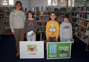 Zur Preisverleihung kurz vor Ferienbeginn empfing sie die drei Gewinner in der Stadtbücherei. Mit ihrem Eichhörnchen konnte Mara die Jury überzeugen und holte sich den ersten Platz. Auf den Plätzen zwei und drei folgten Artem mit einem Pinguin-Bild und Soel mit einer gemalten Schlange. Alle drei bekamen Gutscheine für einen Buchladen sowie Getränkegutscheine für die Stadtbücherei und je einen Malstift.