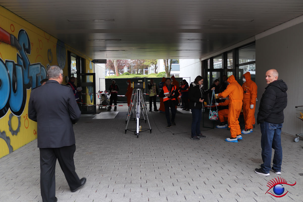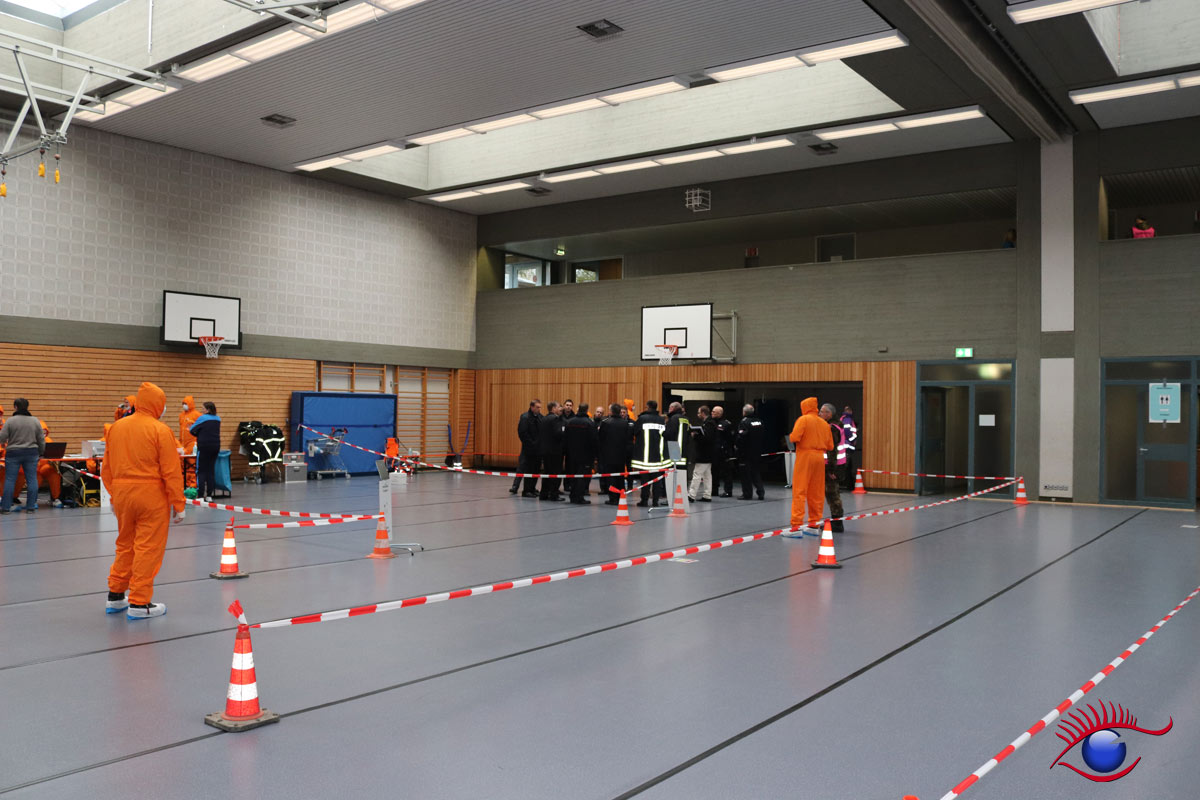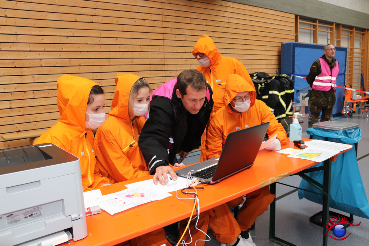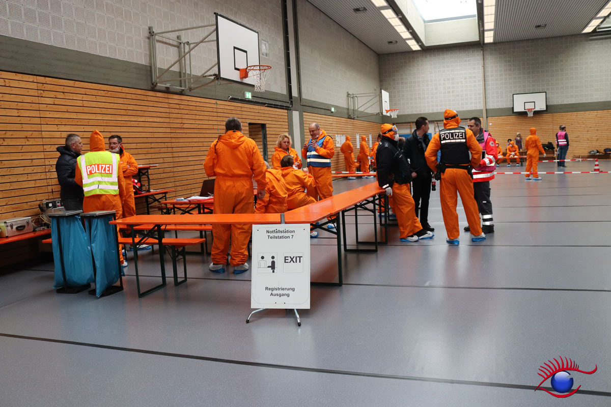 Geübt wurde der Aufbau beziehungsweise der Betrieb einer sogenannten Notfallstation. Diese sind wesentlicher Bestandteil der Katastophenschutzplanungen in der Umgebung von Kerntechnischen Anlagen.