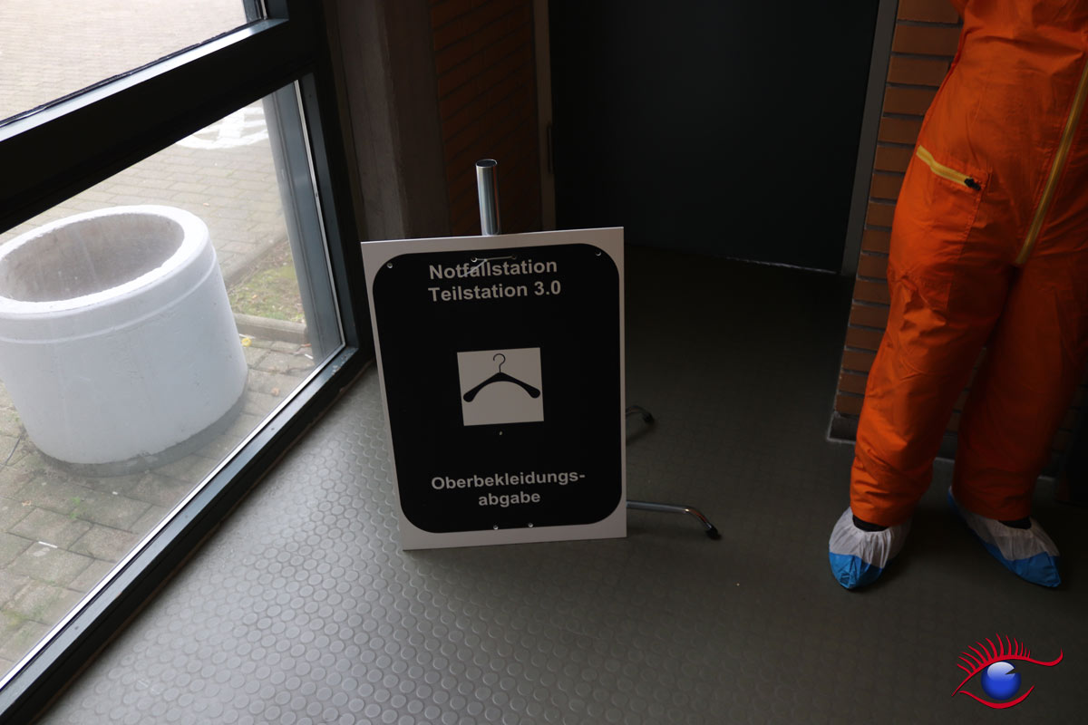 Teilstation 1 – Eingang, Befragung der eintreffenden Personen (bei der Befragung ist festzustellen, ob die Personen aus einem betroffenen oder nicht betroffenen Gebiet kommen)