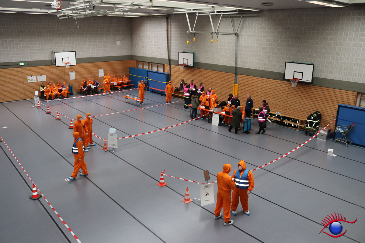 Für den Betrieb der Notfallstation wird eine große Anzahl an Helfern benötigt, Sanitätsdienste, Polizei, Feuerwehr, Technisches Hilfswerk, Psychosoziale Notfallversorger (PSNV) sowie Vertreter der verschiedensten Behörden.