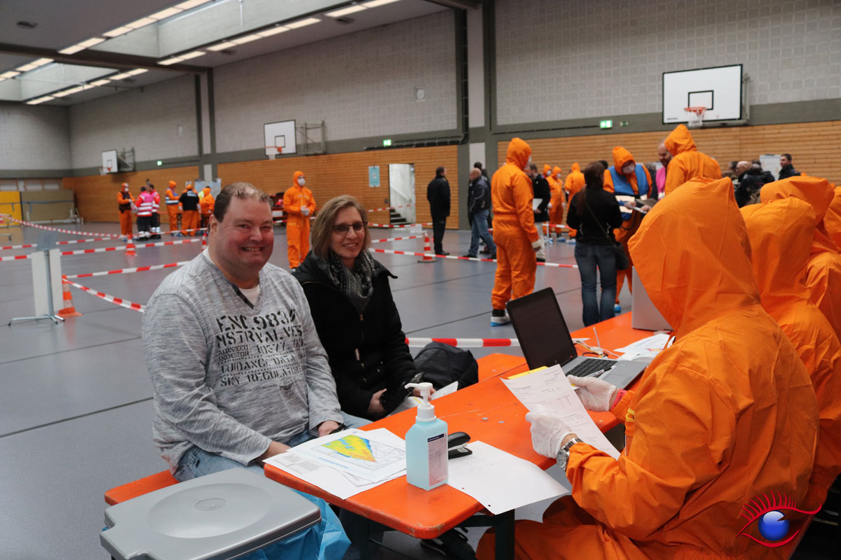Für die Pilotübung Radioaktiver Zwischenfall wurden in Wiesloch etwa 100 Darsteller engagiert. Auch diese leisteten ganze Arbeit, sie spielten ihre Rollen sehr glaubhaft, der Ensthaftigkeit einer solchen Katastrophenschutzübung bewusst.