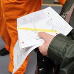 Teilstation 3 – Kontaminationsmessung. Auf dem Erhebungsbogen ist von der Einsatzkraft das Ergebnis der Kontaminationsprüfung einzutragen.