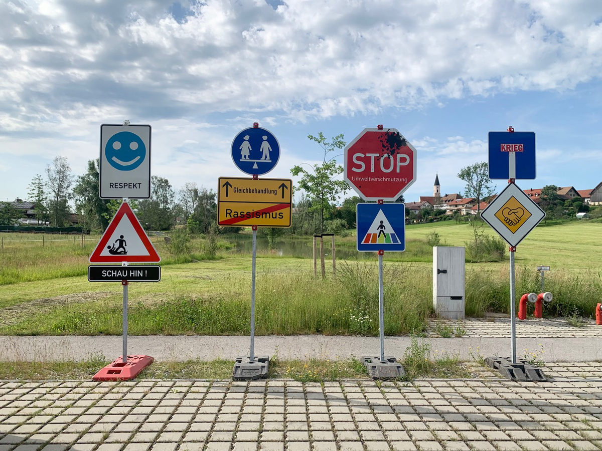 Die sieben Schilder, die den bekannten Verkehrsschildern nachempfunden sind, wurden ursprünglich von 500 Jugendlichen aus ganz Europa während der 4. Internationalen Gipfelkonferenz der Kinder und Jugendlichen 2021 in Nürnberg entwickelt. Unter der künstlerischen Leitung von Johannes Volkmann entstanden Motive, die auf mehr Gerechtigkeit im gesellschaftlichen Miteinander aufmerksam machen sollen.