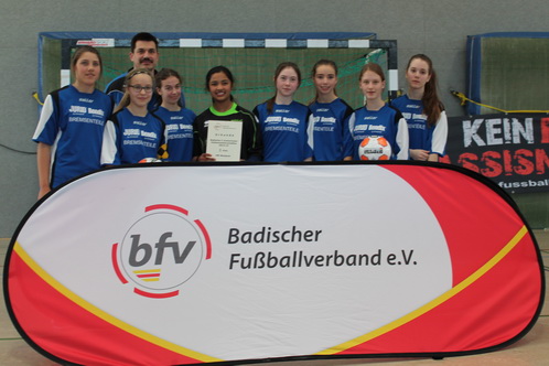 Bei der Siegerehrung nahm Spielführerin Stefanie Zerr die Ehrung für den vierten Platz von Ottmar Burkhard Spielleiter des Badischen Fußballverbandes entgegen. Damit erreichten die die C-Juniorinnen des VfB Wiesloch einen tollen Erfolg bei den Badischen Meisterschaften 2015.