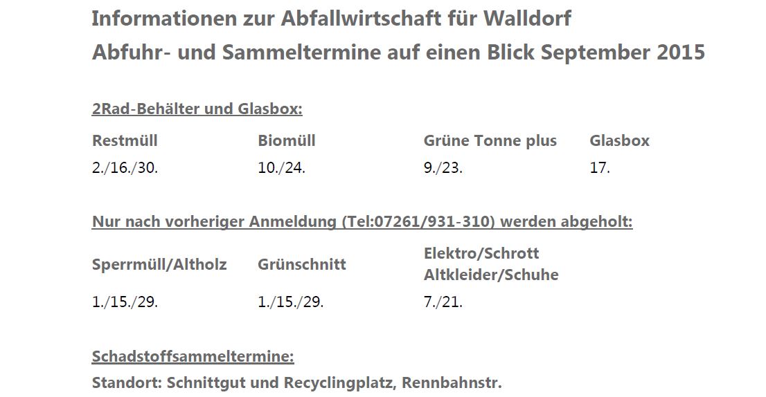Walldorf: Abfuhr- und Sammeltermine