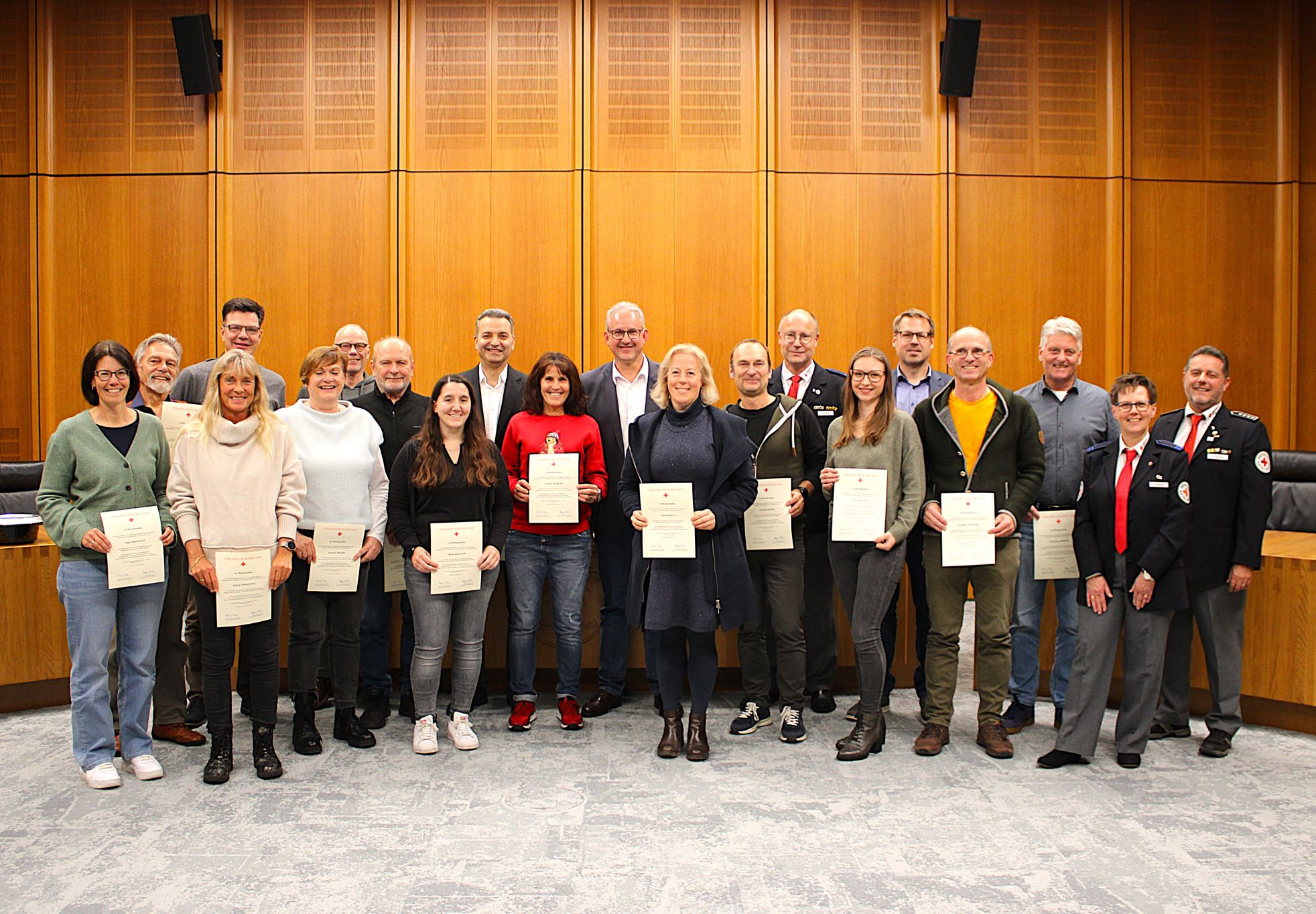 Die Ehrung führt Matthias Renschler gemeinsam mit Carmen Kollenz, Thorsten Antritter und Andreas Schuppe vom Ortsverein des Deutschen Roten Kreuzes (DRK) sowie Heike Käller (Fachdienst Kultur und Sport) durch, denen er herzlich dankt. Den Aktiven des DRK für die stets perfekte Vorbereitung und Organisation der vier Walldorfer Blutspendetermine im Jahr mit durchschnittlich jeweils rund 200 Spendern, aber auch dafür, dass sich die Ehrenamtlichen gemeinsam mit den anderen Hilfs- und Rettungsorganisationen praktisch täglich „um unsere Gesundheit und Sicherheit kümmern“. An Heike Käller geht der Dank für die reibungslose Organisation der Feierstunde.