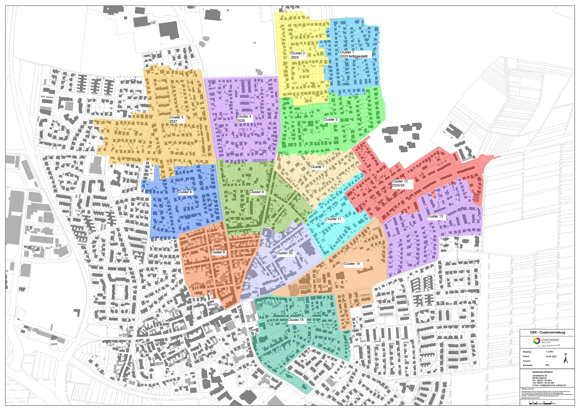 Im März 2023 haben die Stadtwerke Walldorf und ihr Tochterunternehmen DHV e-Net mit der Umsetzung des Großprojekts Dachständerrückbau begonnen, für das eine Laufzeit von sieben bis zehn Jahren und Gesamtkosten von rund 50 Millionen Euro veranschlagt sind. Hintergrund ist, dass noch immer ein großer Teil der Haushalte im Walldorfer Stadtgebiet über Freileitungen an das Stromnetz angebunden ist. Diese entsprechen nicht mehr den Anforderungen an ein zukunftssicheres Stromnetz und eine moderne Lebensqualität, unter anderem mit Ausblick auf das Laden einer Vielzahl von Elektrofahrzeugen an privaten Stromanschlüssen und die Heizungsumstellung auf elektrische Wärmepumpen. Für die Maßnahme wurde das Stadtgebiet in 15 Abschnitte unterteilt, sogenannte „Cluster“. Mit der Erdverkabelung werden die Stadtwerke vorausschauend die Anschlussleistung verdoppeln und somit auch die Grundlage bilden, moderne Energiedienstleistungen in Anspruch zu nehmen. Neben dem Ausbau des Stromnetzes wird auch Glasfaser gleich mitverlegt, Ziel ist ein zukunftsfähiges Strom- und Telekommunikationsnetz.