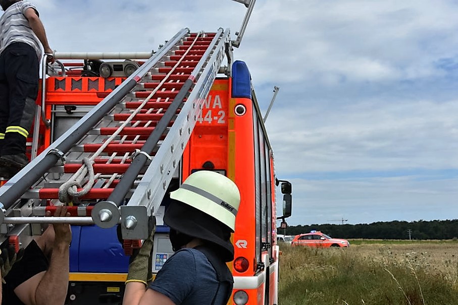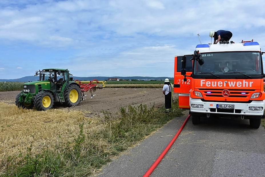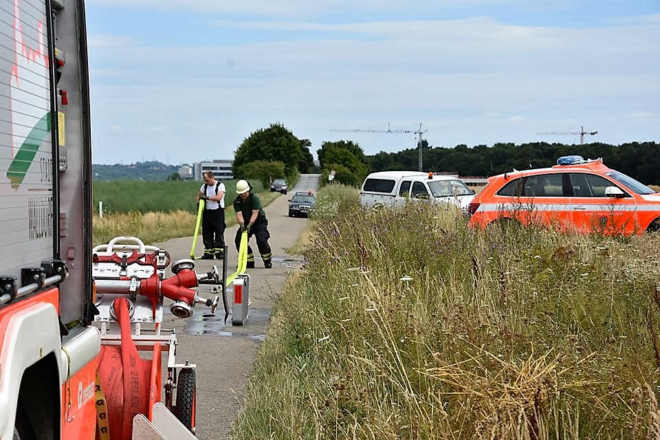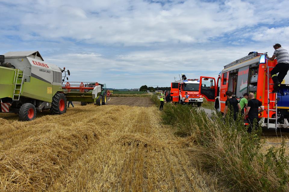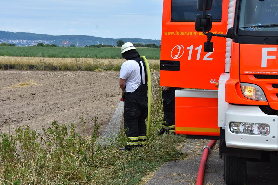 Um einen größeren Schaden durch ein Übergreifen der Flammen zu vermeiden, erntete der Bauer im angrenzenden Bereich des Feuers das Getreide mit seinem Mähdrescher noch schnell ab. Zur Brandbekämpfung war die Freiwillige Feuerwehr Walldorf mit 3 Fahrzeugen und 20 Einsatzkräften vor Ort.