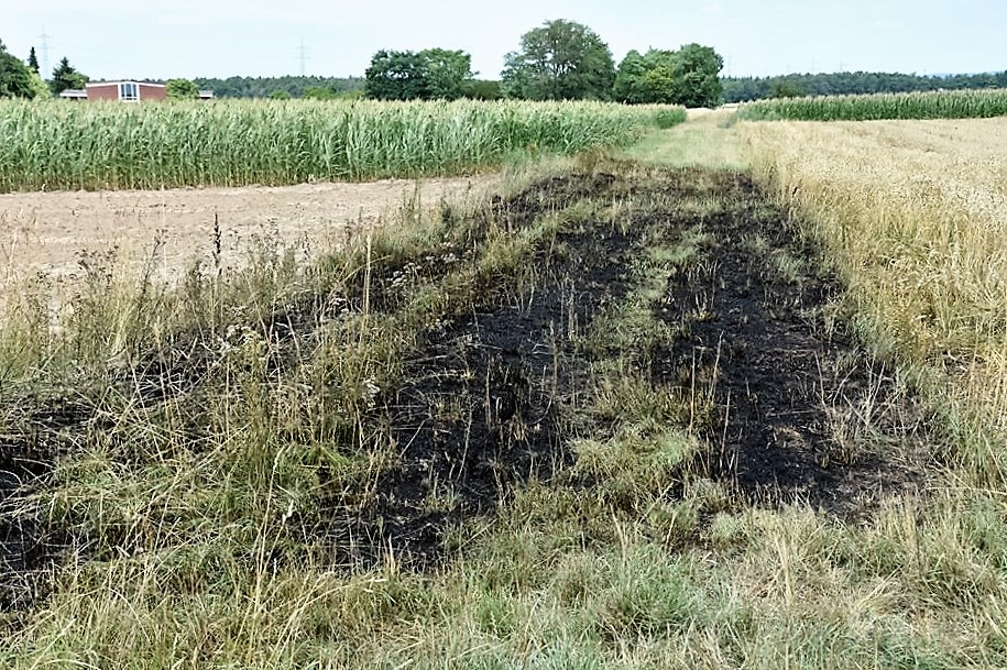 Walldorf (ots) – Auf einem gedroschenen Teilbereich eines Getreidefeldes entzündete sich am Sonntagmittag aus unbekannter Ursache ein Feuer. Möglicherweise könnte es durch eine Glasscherbe zu einer Selbstentzündung gekommen sein. Durch die abgebrannte Fläche von ca. 30 x 30 Meter entstand dem Landwirt ein nur geringer Sachschaden.