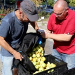 Das tat auch Carsten Voges, der am Nachmittag seine zweite Fuhre mit dem Fahrrad zur Apfelpresse brachte. Die Äpfel hatte er von zwei Bäumen auf der Streuobstwiese bei der SAP geerntet. Für die Apfelpresse kam er allerdings etwas zu spät: Sie war aufgrund der geringen Resonanz schon etwas früher abgebaut worden. „Die Äpfel gehen an den Tierpark“, hatte Bernd Gröner jedoch trotzdem eine sinnvolle Verwendung für die Ernte von Carsten Voges. Dieser durfte sich – wie die anderen fleißigen Erntehelfer – einen Karton frisch gepressten Apfelsaft mit nach Hause nehmen.