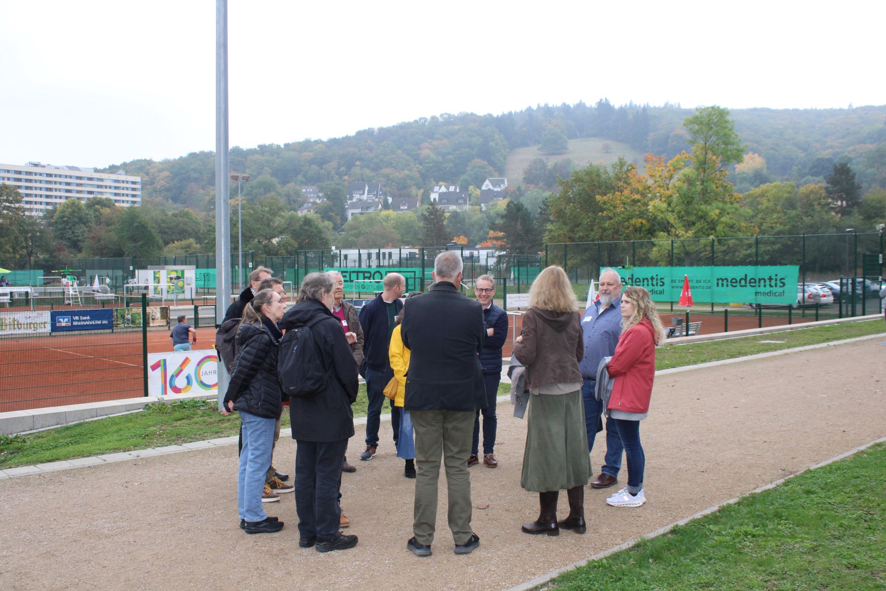 Fast fertig ist auch der Wiederaufbau der Tennisanlage des HTC Bad Neuenahr, wo Annette Bartsch die Walldorfer Delegation mit vielen Informationen versorgt. Der 1920 gegründete Verein, langjähriger Ausrichter der deutschen Seniorenmeisterschaft, konnte vergangenes Jahr seine ersten sechs Tennisplätze auf der in den historischen Lenné-Park eingebetteten Clubanlage wieder in Betrieb nehmen, in der laufenden Saison sind die sieben weiteren dazu gekommen. „Es ist ein zähes Ringen“, sagt Annette Bartsch über das noch fehlende Kinderspielfeld und die Diskussionen um eine Tennishalle. Wie geschichtsträchtig die Anlage ist, belegt die Tatsache, dass hier 1961 Rod Laver ein Turnier gewonnen hat – der mit elf Grand-Slam-Titeln dekorierte Australier gilt als einer der besten Spieler seiner Zeit. Und ein Zeitungsartikel zur 50. Auflage der deutschen Seniorenmeisterschaft erwähnt mit Kurt Vogel auch einen Teilnehmer vom TC Walldorf in der Klasse Herren 75.