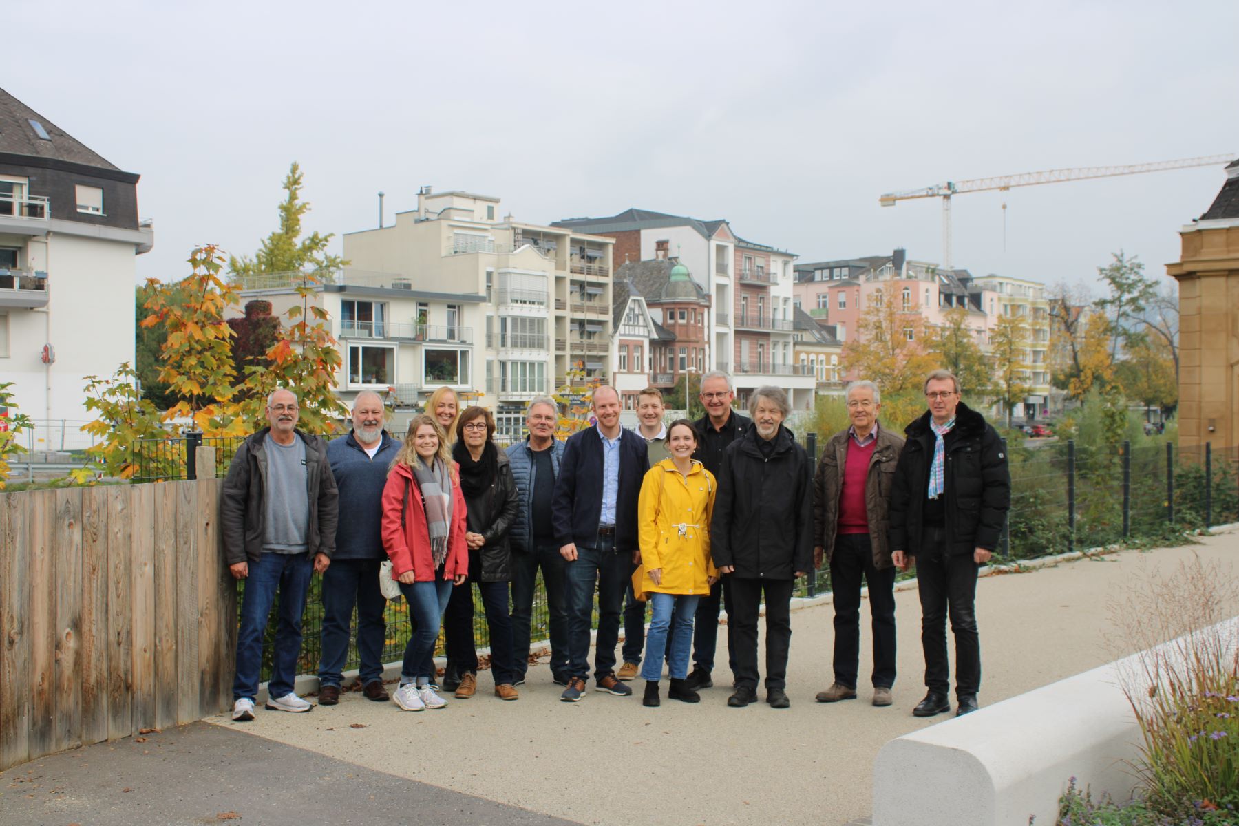 Bürgermeister Matthias Renschler (3.v.li.), der Erste Beigeordnete Otto Steinmann (li.) und die Walldorfer Delegation beim Besuch mit Ahrtal mit Richard Lindner (2.v.li.), dem Ortsvorsteher von Bad Neuenahr, und David Bongart (3.v.re.), Geschäftsführer des Vereins Zukunftsregion Ahr.