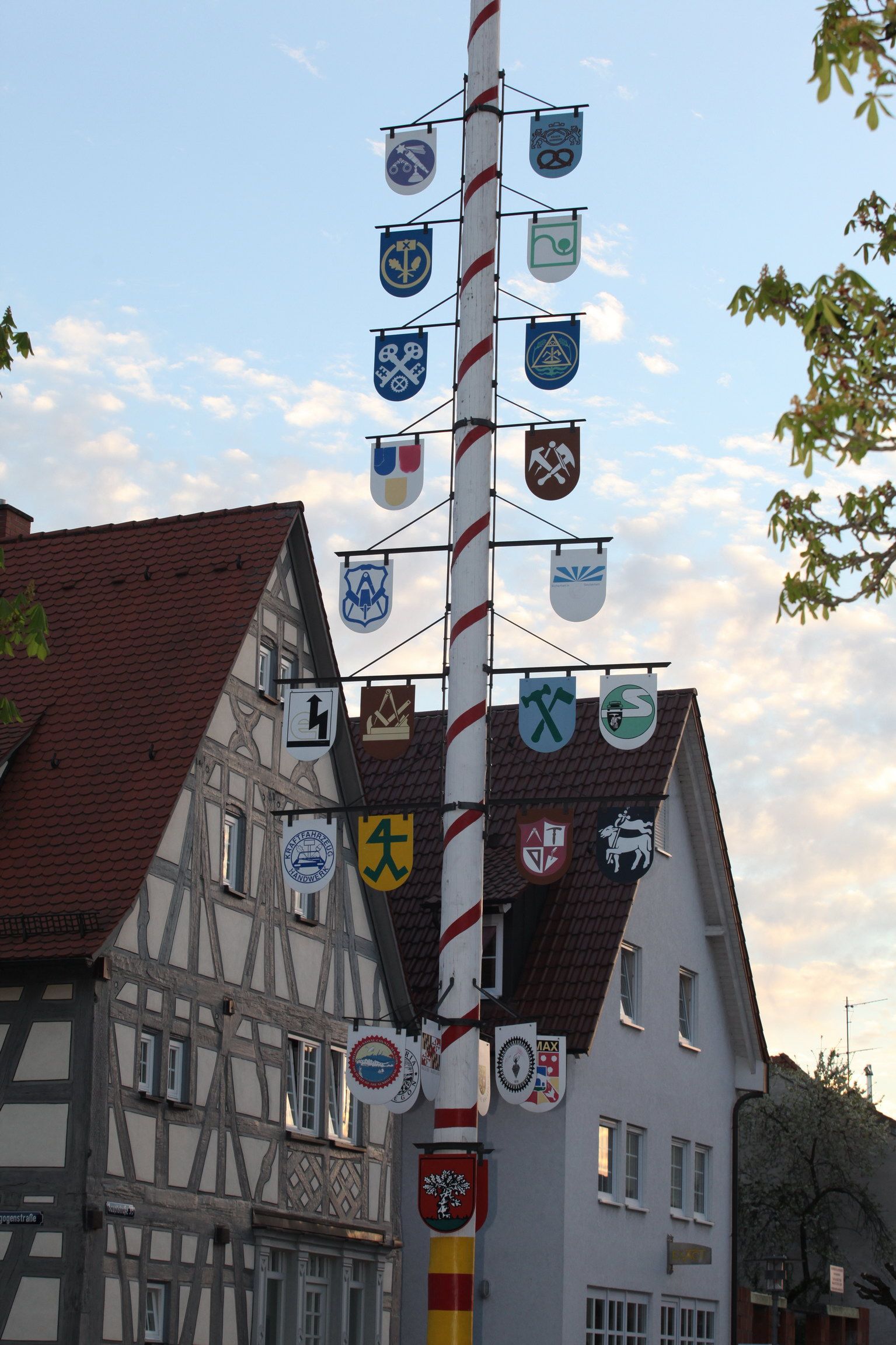 Pünktlich zum ersten Mai wird im Walldorfer Oberdorf ein neuer Zunftbaum aufgestellt, den viele gerne auch als Maibaum interpretieren.