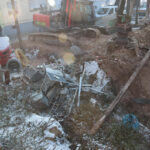 (rp) Wiesloch, 1712.2022 – Der Eigentümer des Hauses rechts der Baugrube verständigte die Polizei, nachdem er eine Beschädigung an seinem Haus entdeckt hatte. Nun stellt sich ihm die Frage nach der Standfestigkeit des Gebäudes, wenn der Abriss in der Nachbarschaft fortgeführt wird.