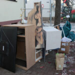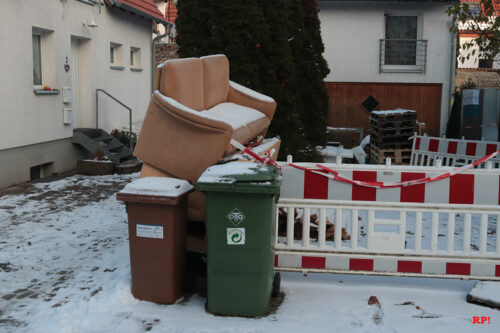 Was vor kurzem noch Teil des gemütlichen Wohnzimmers war, ladet nun auf dem Müll.