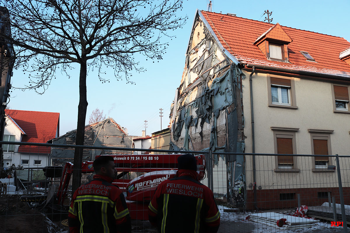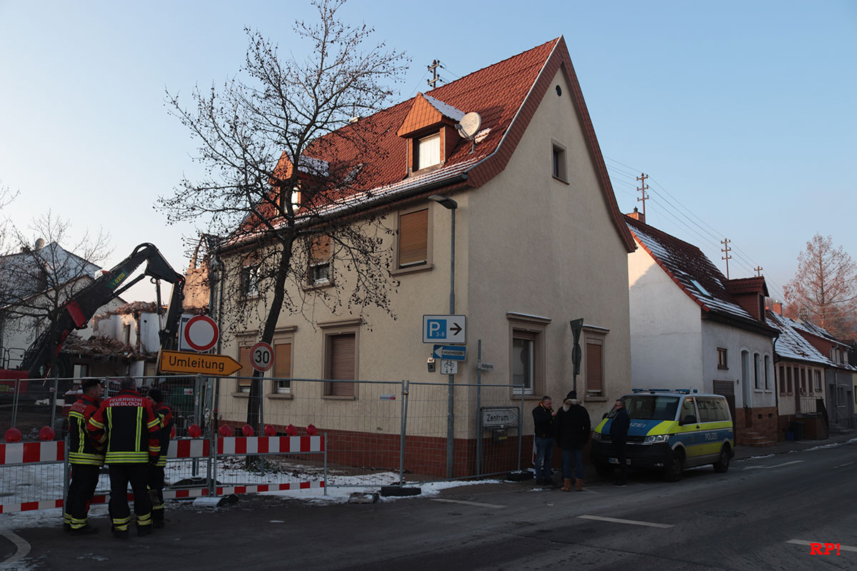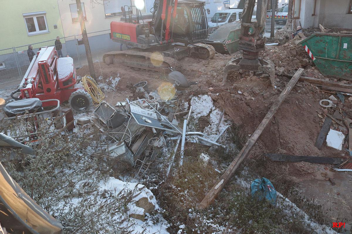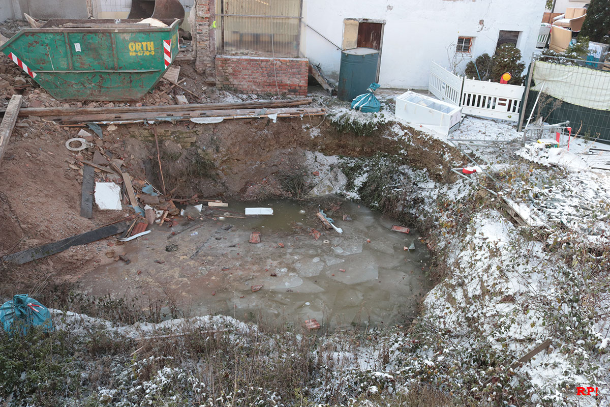 (rp) Wiesloch, 1712.2022 – Der Eigentümer des Hauses rechts der Baugrube verständigte die Polizei, nachdem er eine Beschädigung an seinem Haus entdeckt hatte. Nun stellt sich ihm die Frage nach der Standfestigkeit des Gebäudes, wenn der Abriss in der Nachbarschaft fortgeführt wird.