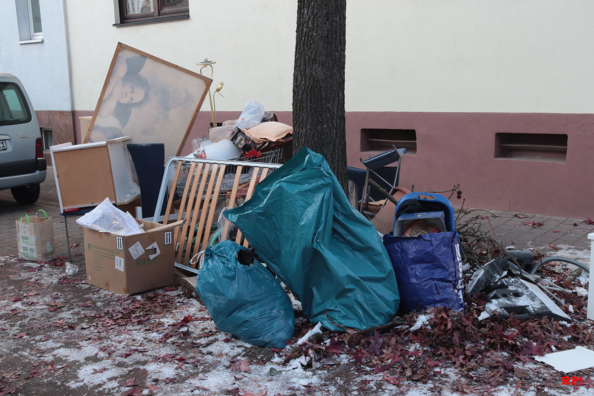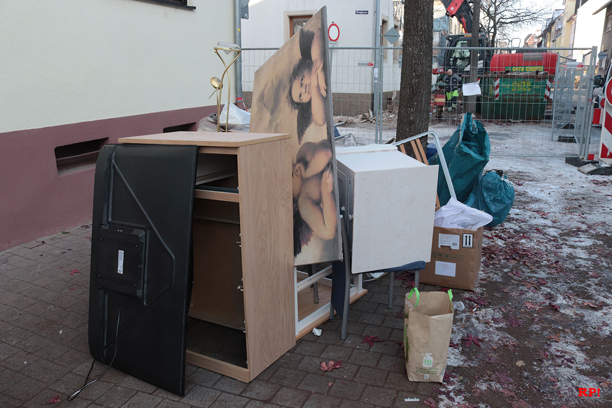 Was vor kurzem noch Teil des gemütlichen Wohnzimmers war, ladet nun auf dem Müll.