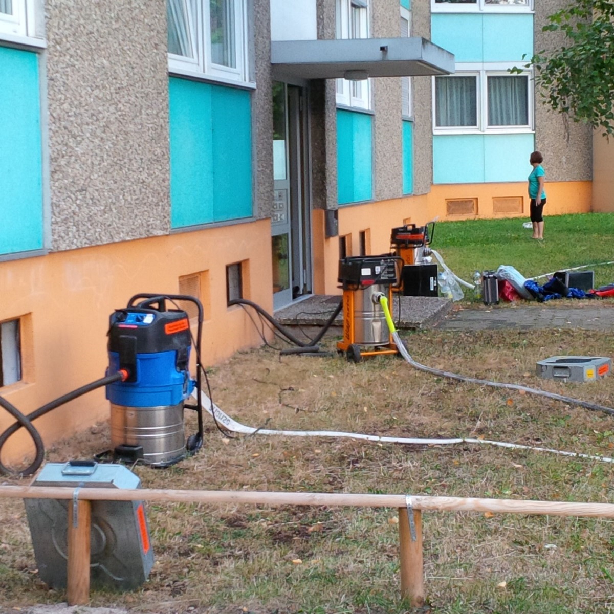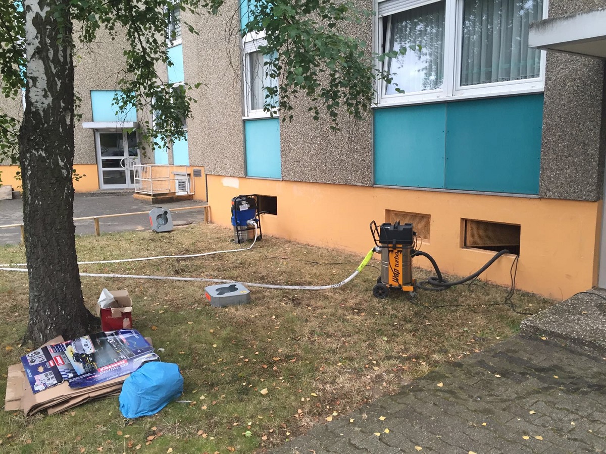 Mittels mehrerer Wassersauger wurde das Wasser aus den Kellerräumen beseitigt und die Einsatzstelle an den zuständigen Hausmeister übergeben.