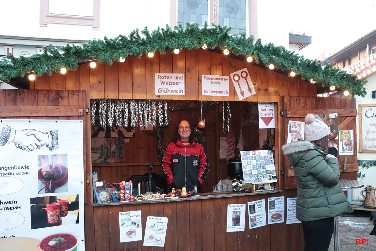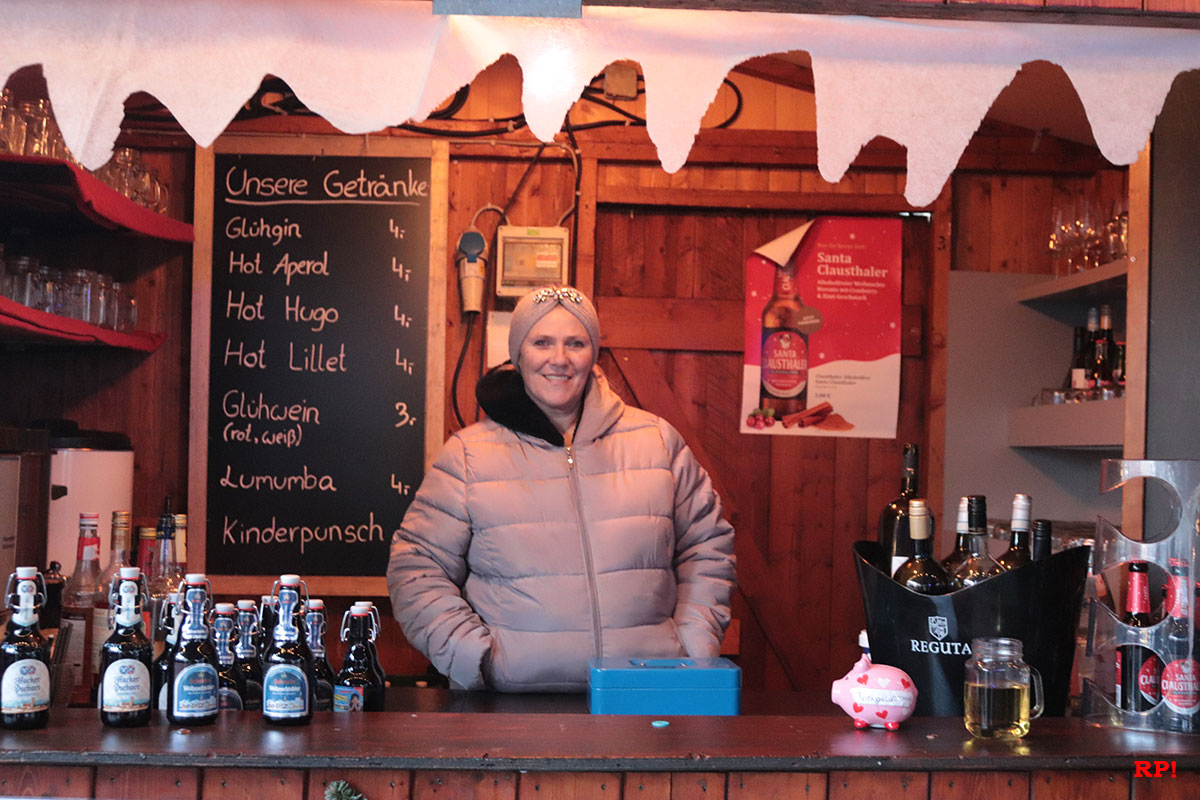 Winzersteak, Bratwurst & Co. fand man wie gewohnt bei Lowingers. Chefin Karen Lowinger war wie immer unermüdlich dabei, ob im Einsatz für die Kinder bezüglich Entenangeln (auf dem Winzerfest und Kerwe in der Region) oder beim Einsatz für das leibliche Wohn der Erwachsenen auf dem Weihnachtmarkt. Sie ist immer mit einem Lächeln und viel Freude dabei.