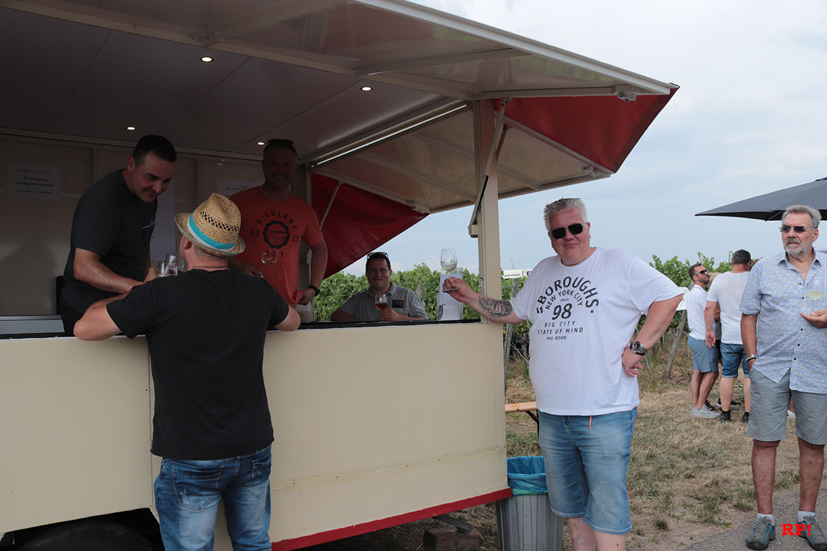 Hügellandschaft des Kraichgaus, inmitten der Rauenberger Weinberge fanden sich verschiedene Stationen. Neben den Winzern aus Rauenberg, Mühlhausen und Malsch und deren Angeboten an Wein, fanden sich auch wieder weitere Stände. Mobile Kaffeebar, Kuchenverkauf, Foodtruck und Eismann – alles vorhanden.
