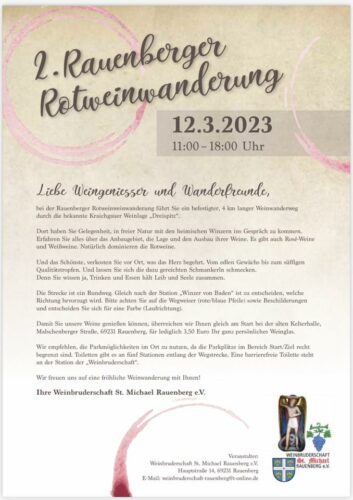 2. Rauenberger Rotweinwanderung am 12.03.2023
