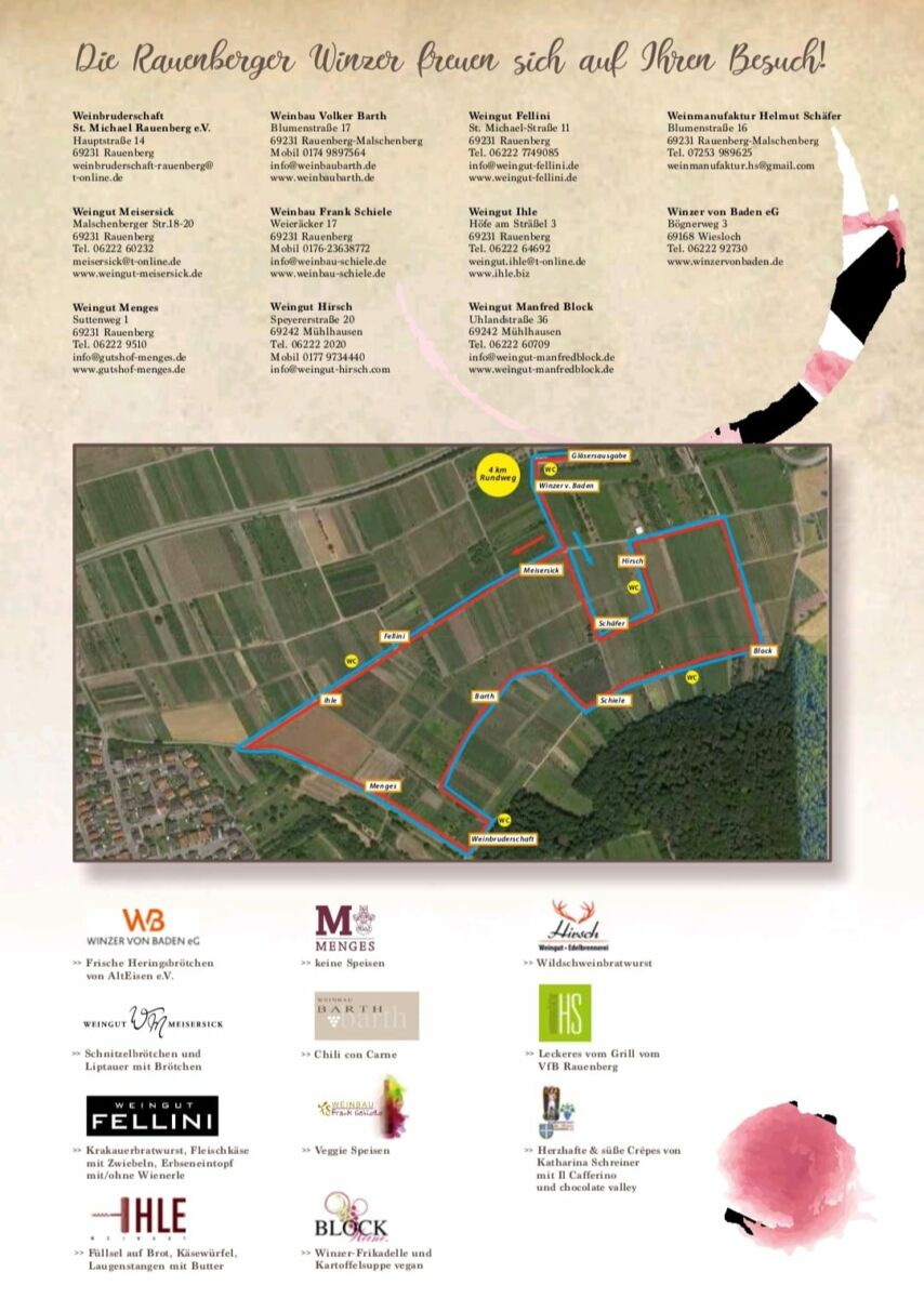 Die Karte und Teilnehmer der 2. Rauenberger Rotweinwanderung 2023: