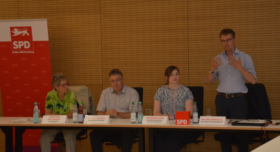 Ein großes Problem sei aber die unklare Situation, wer bleiben dürfe und wer nicht. „Wenn diese grundlegende Frage geklärt ist, können die Integrationsbemühungen viel effektiver stattfinden“, so Weis. Dass die Asylverfahren verkürzt werden müssen und dass nach erfolgter technischer Integration die soziale Einbindung in unsere Gesellschaft eine notwendige Aufgabe sei, das waren nicht nur Beiträge aus der sich anschließenden lebhaften Diskussion, die von Dominique Odar von der SPD Mühlhausen moderiert wurde. Das war auch die Überzeugung der Vertreter der unterschiedlichen politischen Ebenen, die sich jeweils in ihrem Zuständigkeitsbereich dafür stark machen wollen.