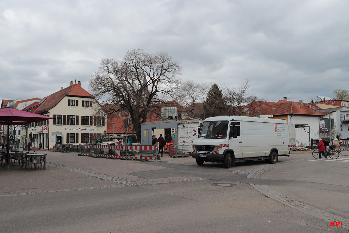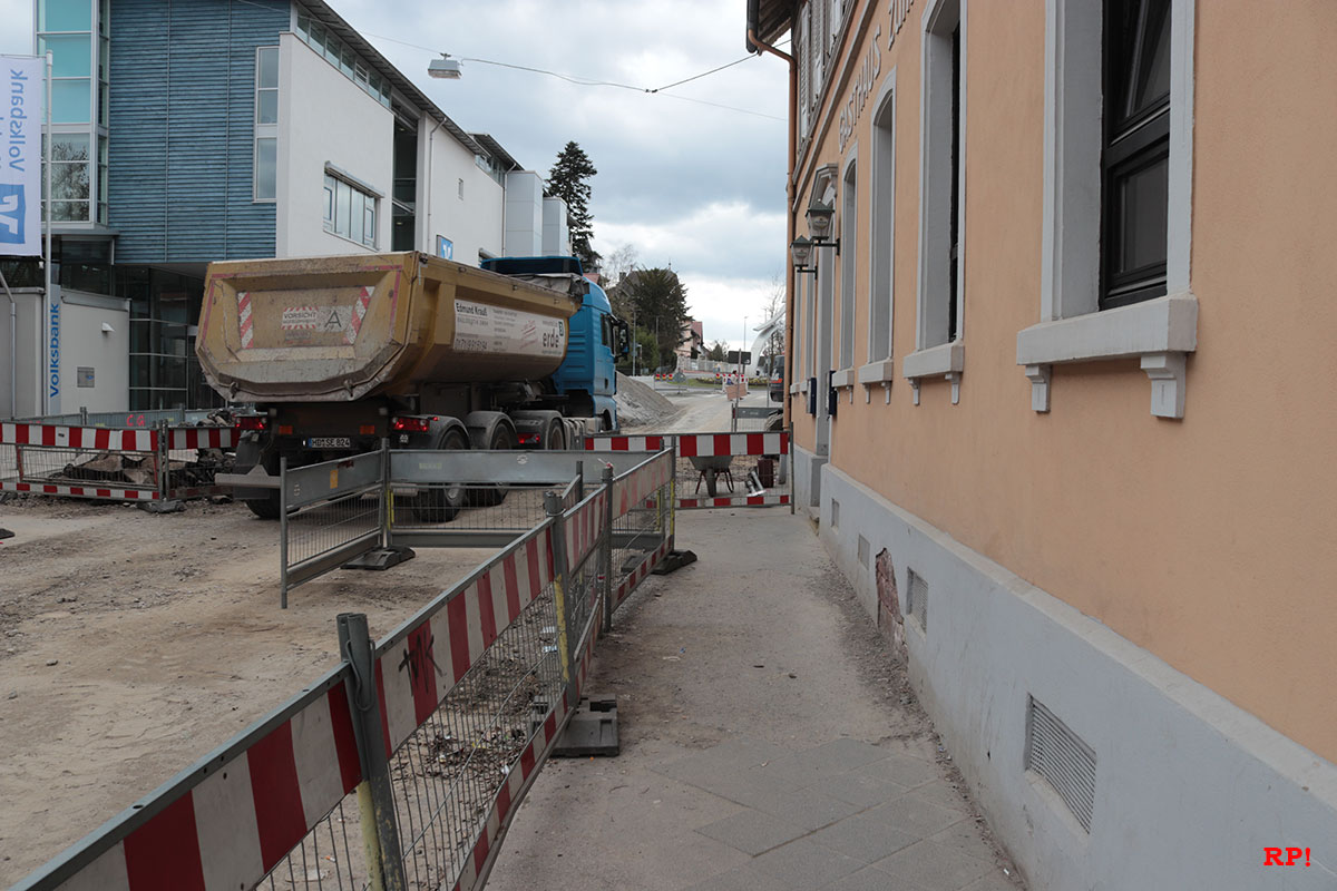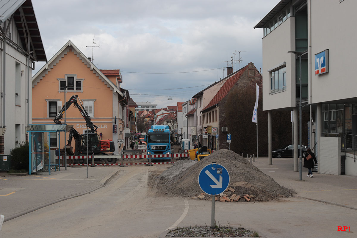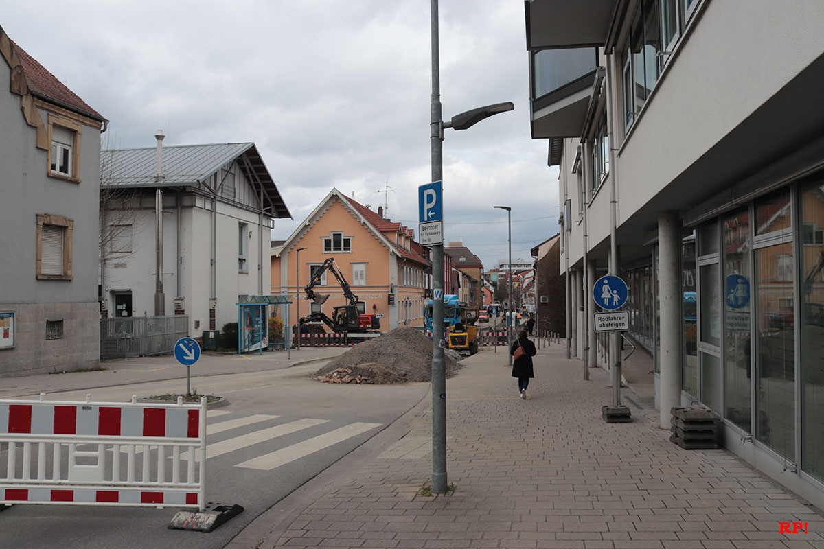 Baustellen in der Wieslocher Innenstadt. Die damit verbundenen Änderungen der Verkehrsführung sorgen für STAU und Verkehrschaos sowie Unsicherheit bei den Fußgängern.