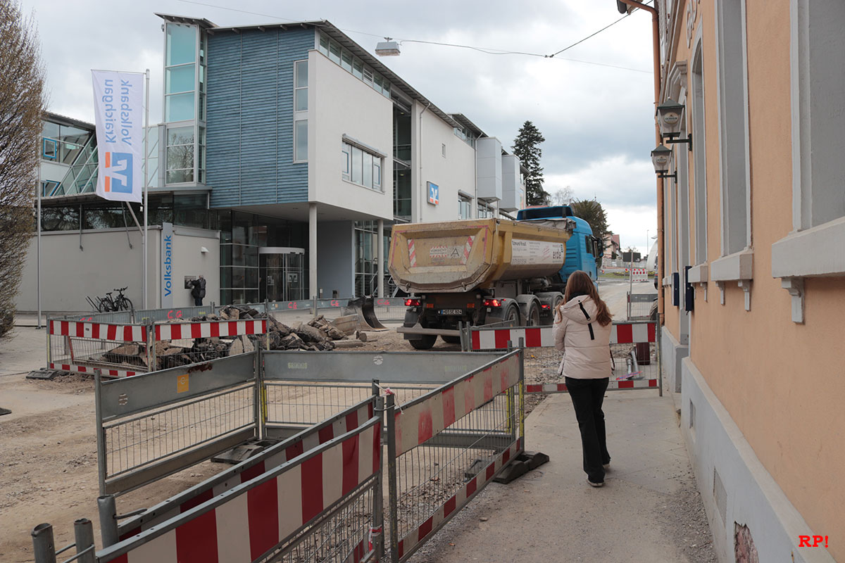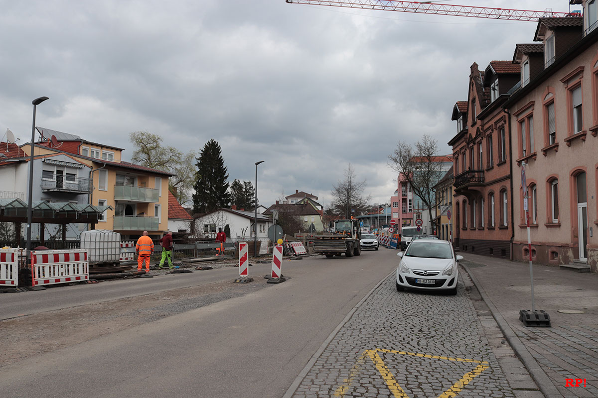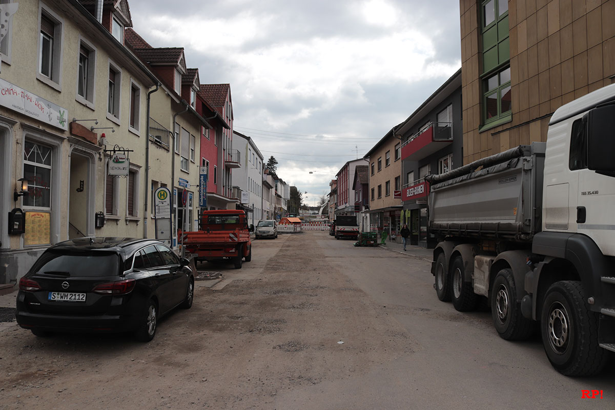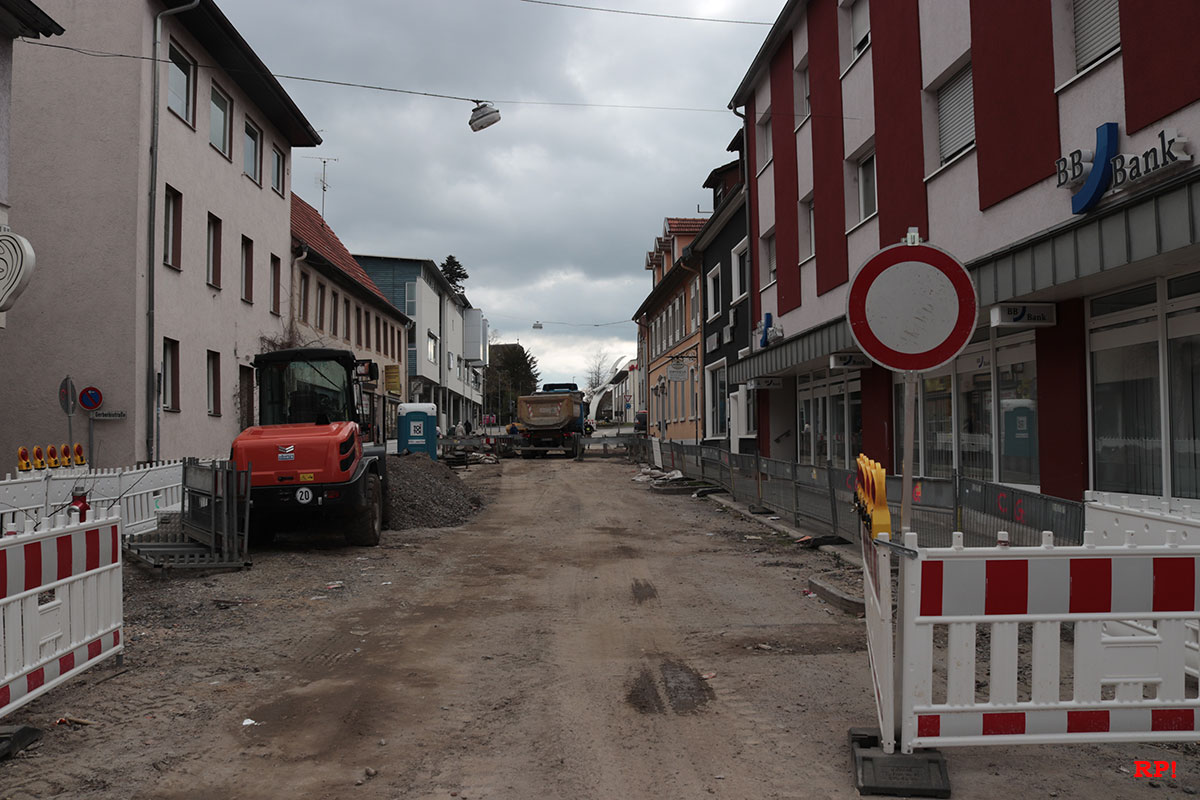 Baustellen in der Wieslocher Innenstadt. Die damit verbundenen Änderungen der Verkehrsführung sorgen für STAU und Verkehrschaos sowie Unsicherheit bei den Fußgängern.