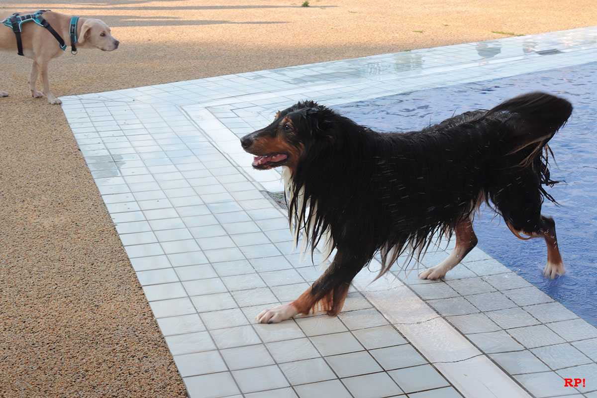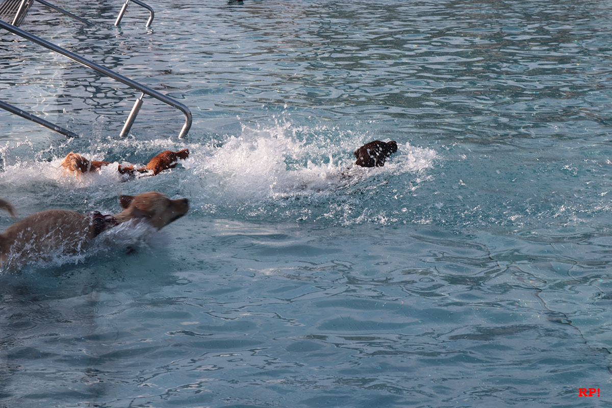 Alle Hunderassen verhielten sich anständig. Temperamentvoll waren viele. Aber alle waren friedlich. Ob am Becken, im Becken oder auf der Wiese. Nicht nur die Schwimmbecken wurden von den Hunden dankbar angenommen, sondern auch die Wiesen. Da hatten die Hunde ausreichend Freiraum zum Rennen und auch zum Toben und Quatsch machen.