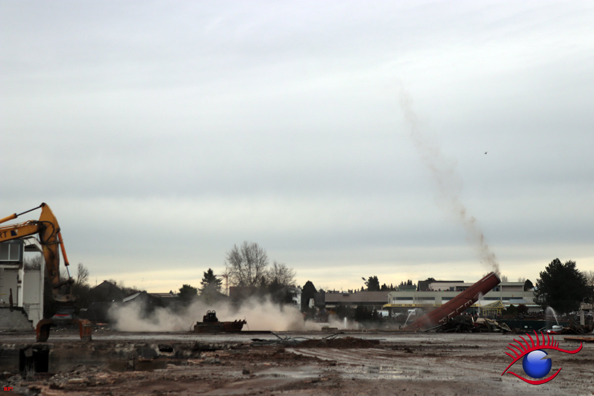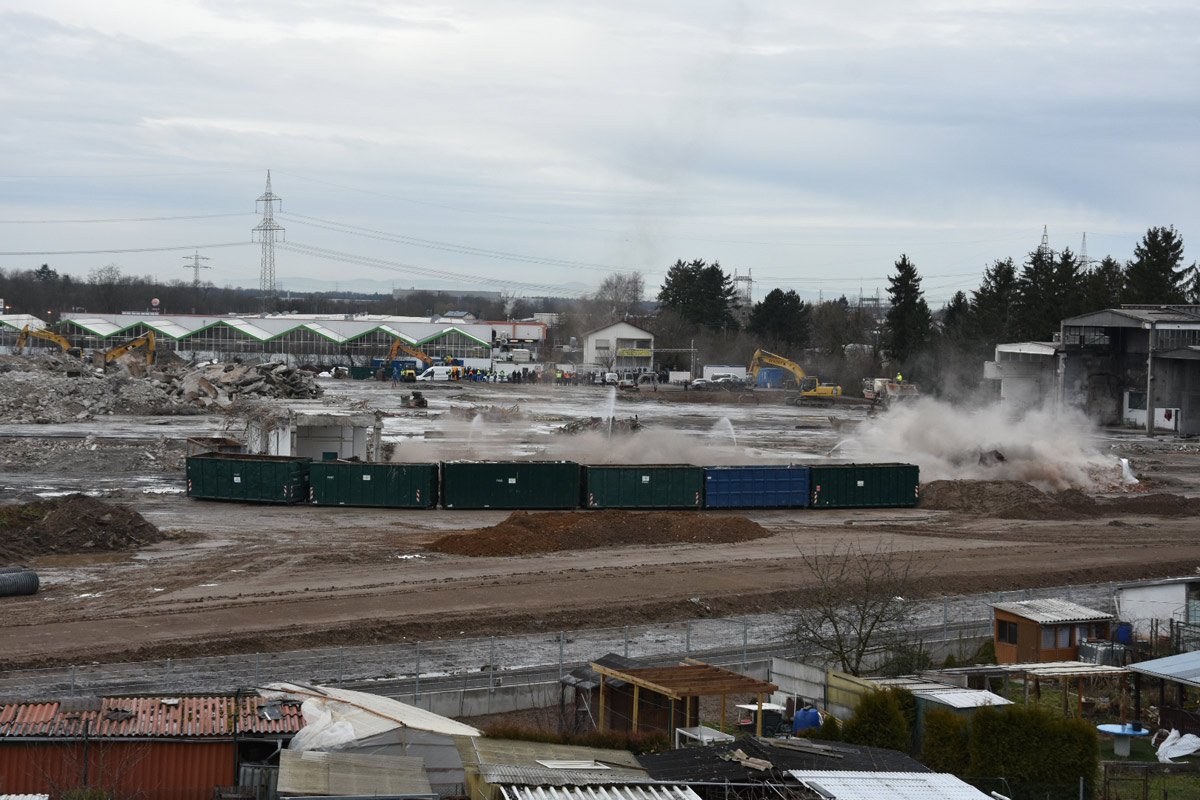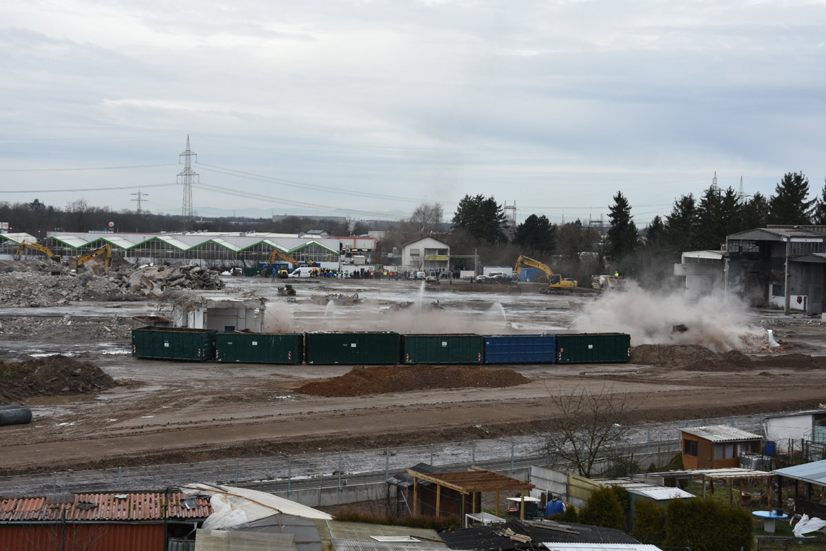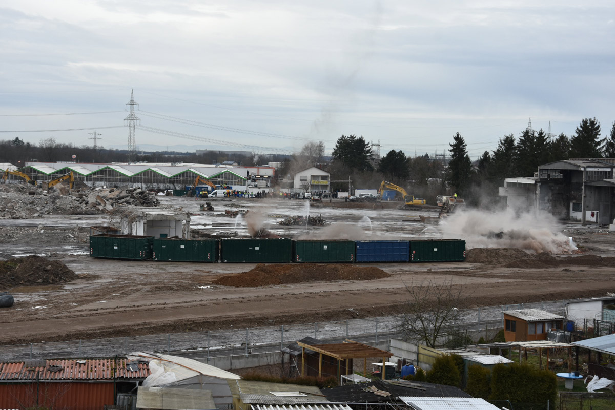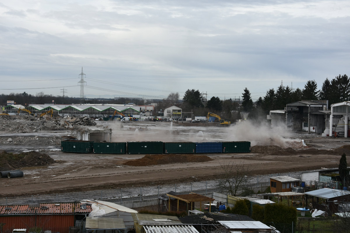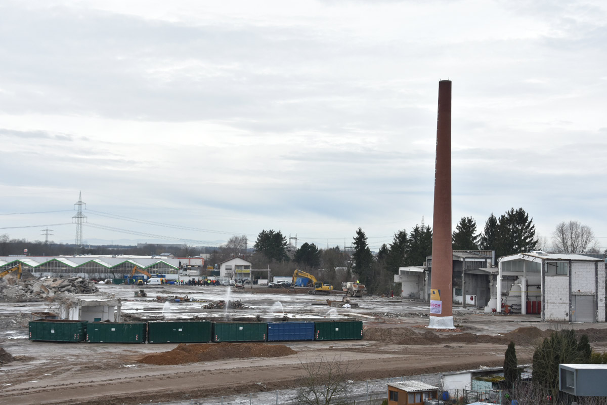 Die Firma ECKERT wird nun bis voraussichtlich Anfang April den Rest der Abrissarbeiten zu Ende führen. Die Industriehallen sind bis auf einen kleinen Rest beseitigt, es bleibt noch die Entfernung des Bodenbelages. Ein Teil wurde bereits ausgehoben.