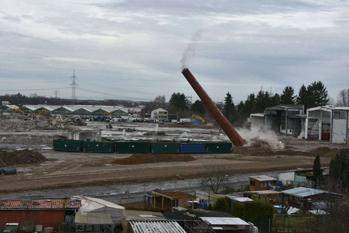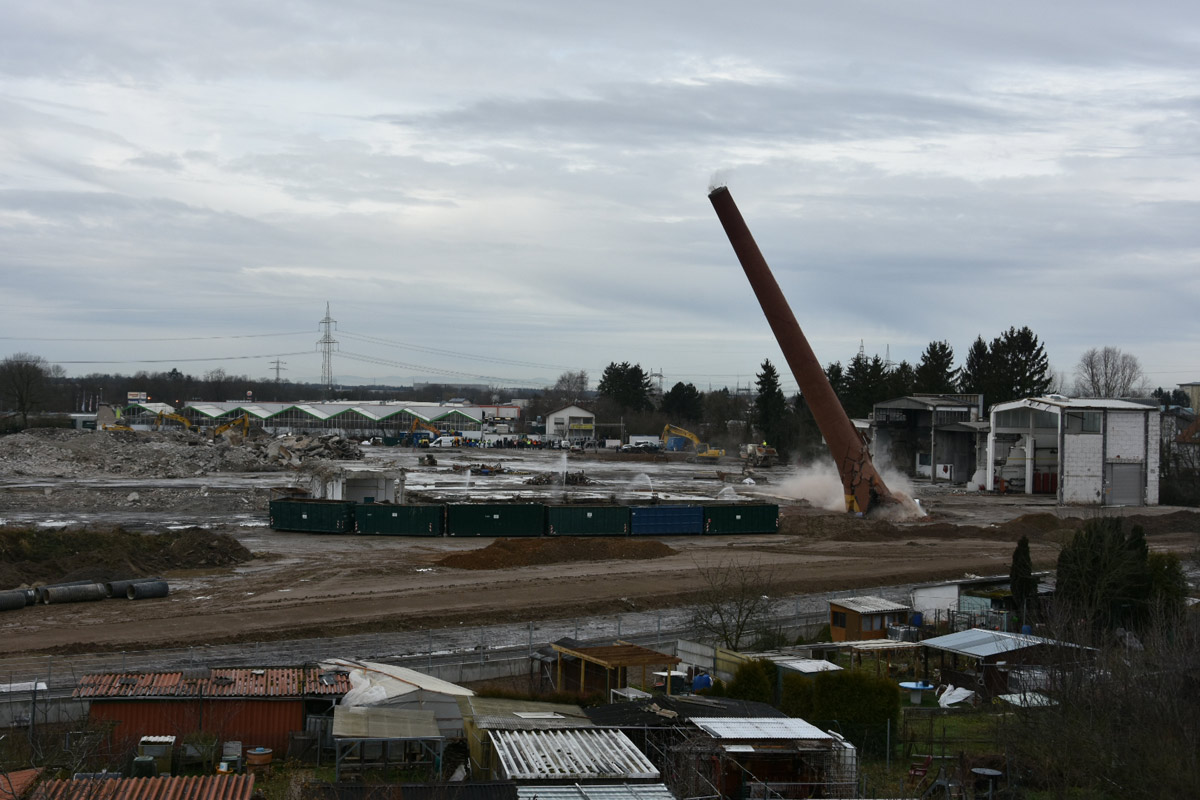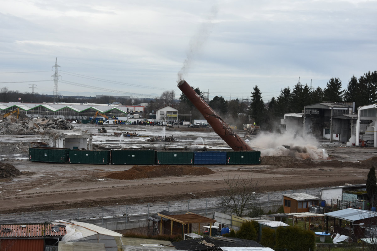 Industrieschornstein der ehemaligen Wellpappe erfolgreich gesprengt – Das endgültige Ende einer Ära in Wiesloch. Und ein Neubeginn zugleich!