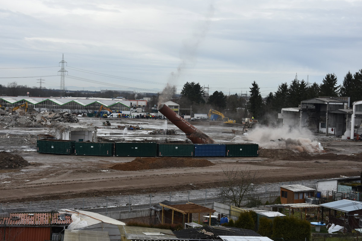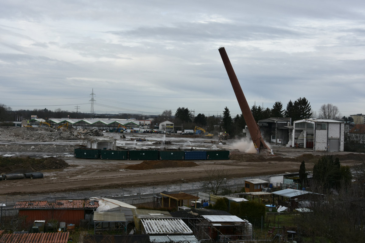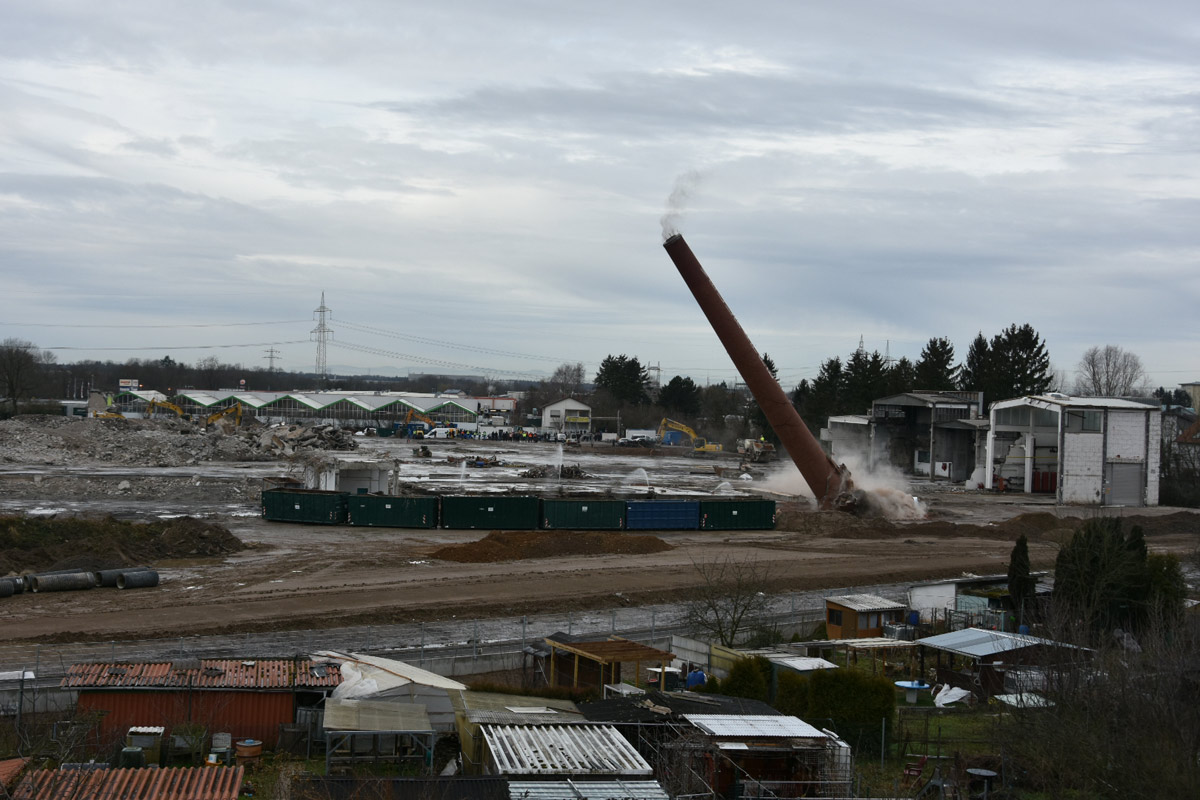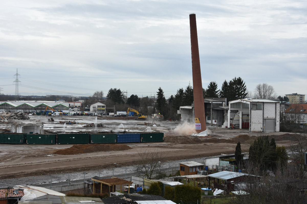 Industrieschornstein der ehemaligen Wellpappe erfolgreich gesprengt – Das endgültige Ende einer Ära in Wiesloch. Und ein Neubeginn zugleich!