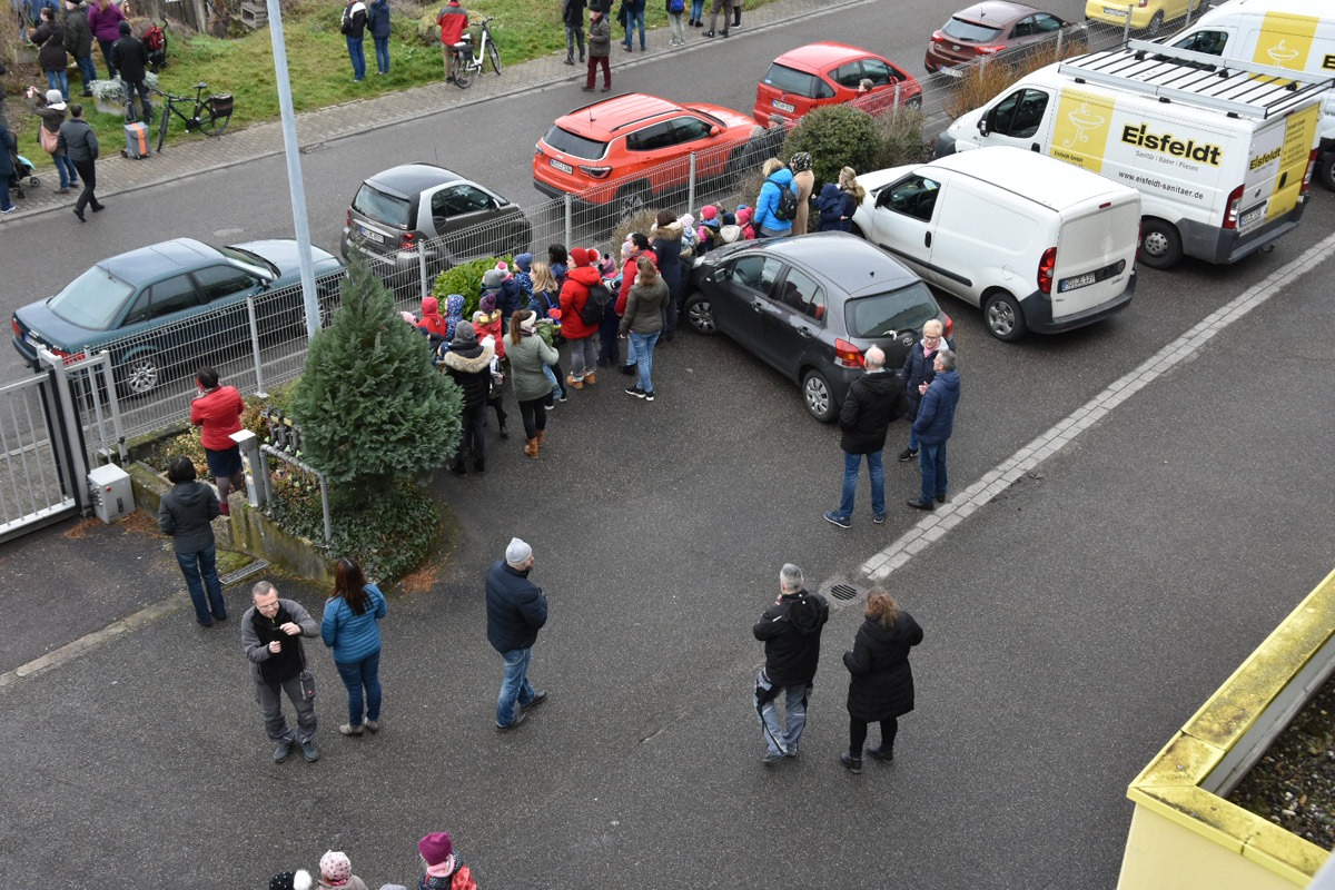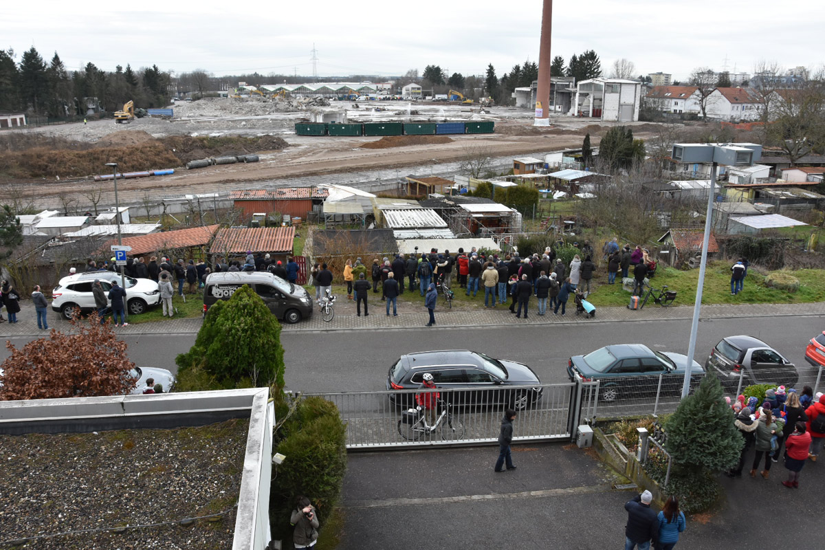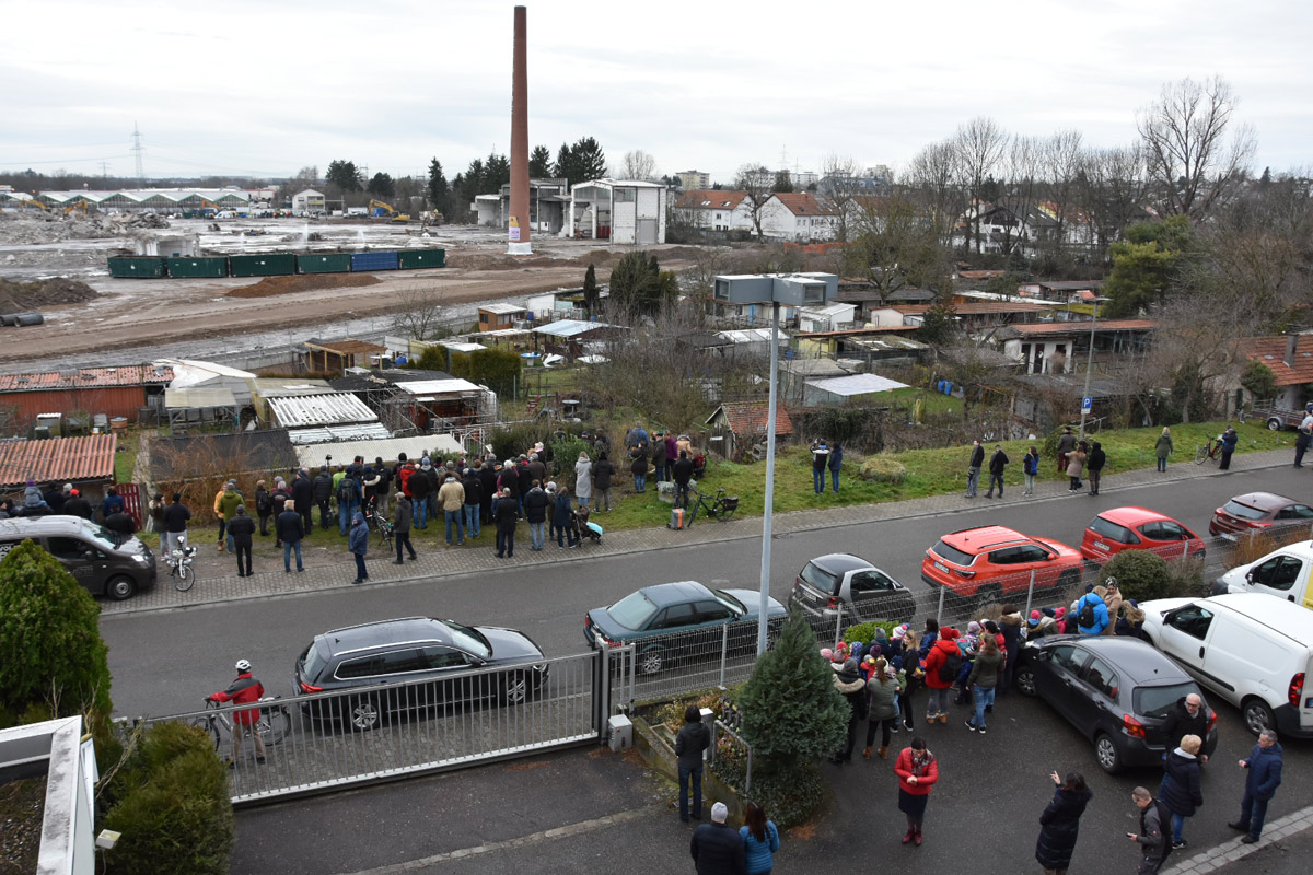 Zahlreiche Zuschauer auf der Lempenseite, darunter Kindergartenkinder mit großen Augen. Aber auch viele interessierte Erwachsene, darunter auch die Mitarbeiter der verbliebenen Unternehmen in der Nachbarschaft im Gewerbegebiet Lempenseite.