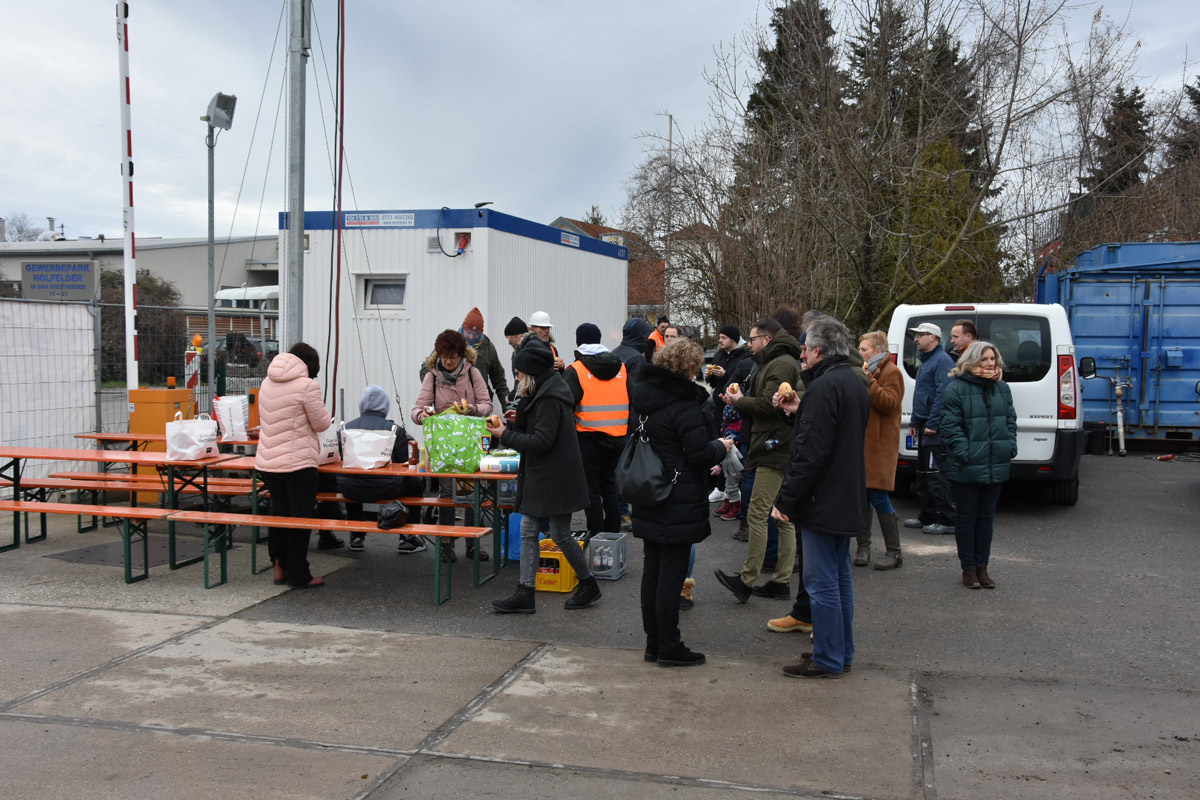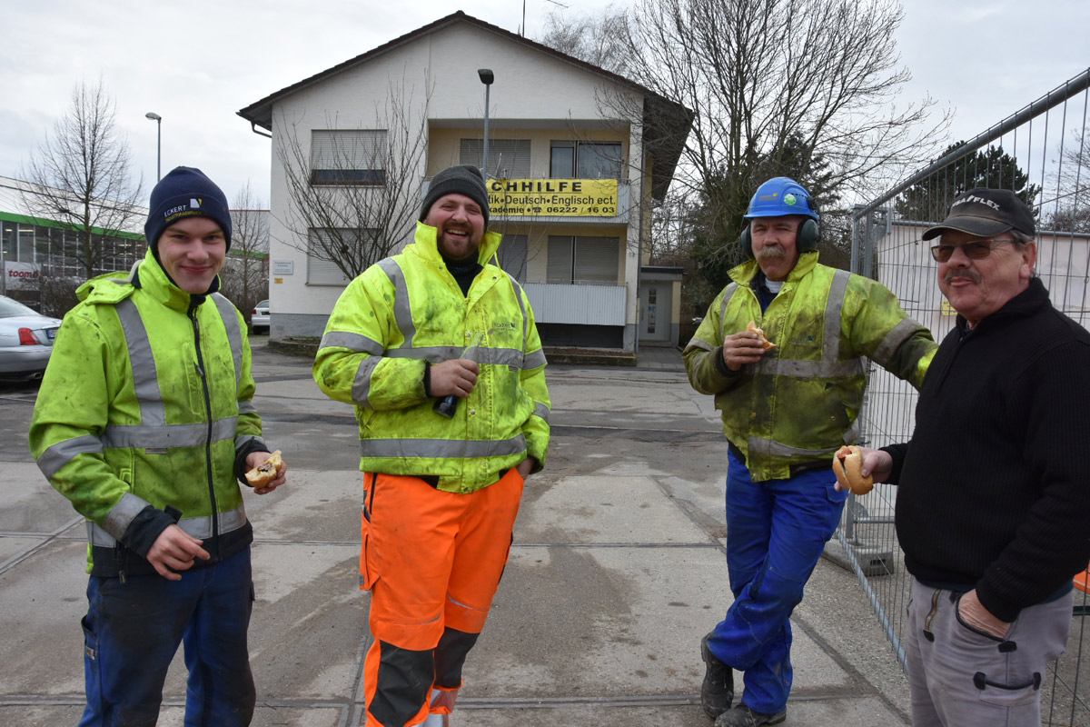 Bei einer Bratwurst und einem Getränk wurde ein Meilenstein zum Spatenstich und dem bevorstehenden Wohnbau gefeiert.
