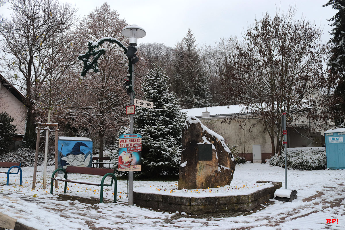 Einen besonderen Charme hat auch das alte Mühlrad durch die weiße Pracht. Relativ zuverlässig wie in den Vorjahren auch schneite es zum 3. Advent in Wiesloch und dem Kraichgau.