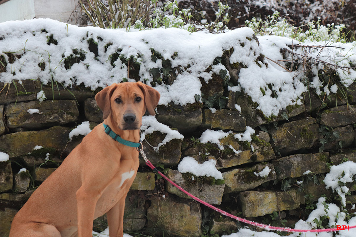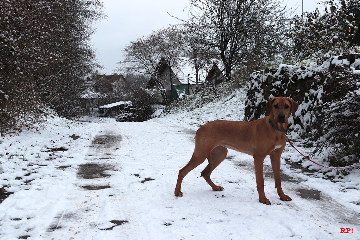 Für so manchen Junghund war Schnee eine ganz neue Erfahrung, ebenso die Begegnung mit einem Pressefotografen. Da bleibt der Vierbeiner lieber auf Abstand.