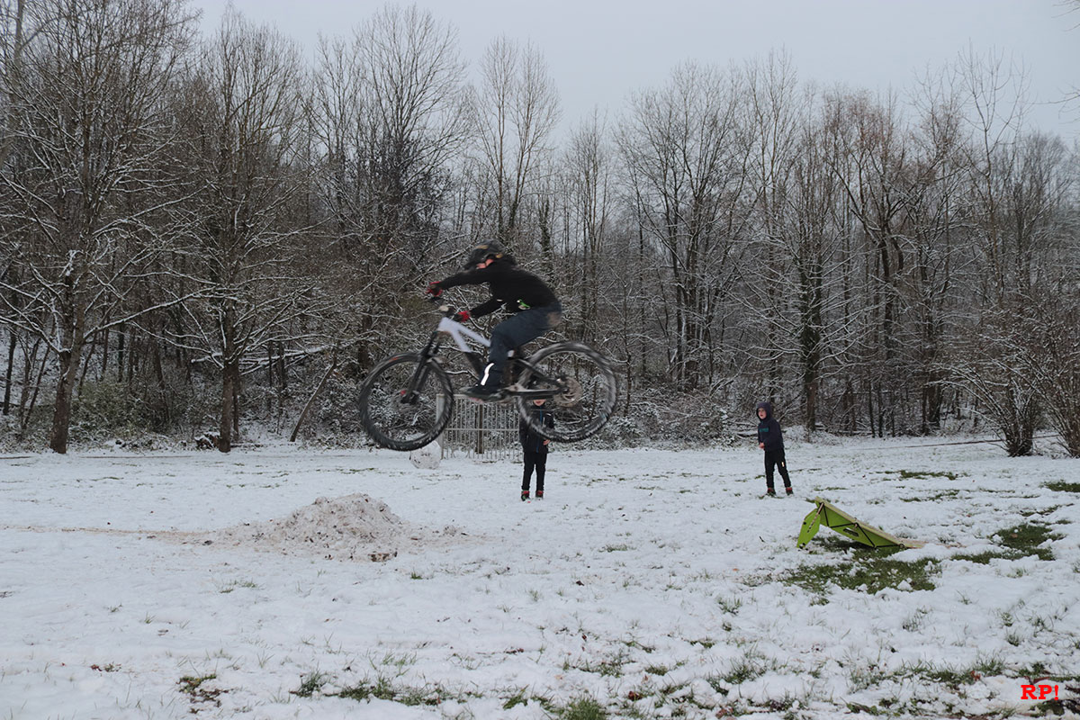 Die Jugend des MSC Schatthausen e.V. trainiert im Schnee mit einer Minirampe. Wer springt höher und weiter ist die Frage. Die älteren im Verein sind aber auch nicht untätig,