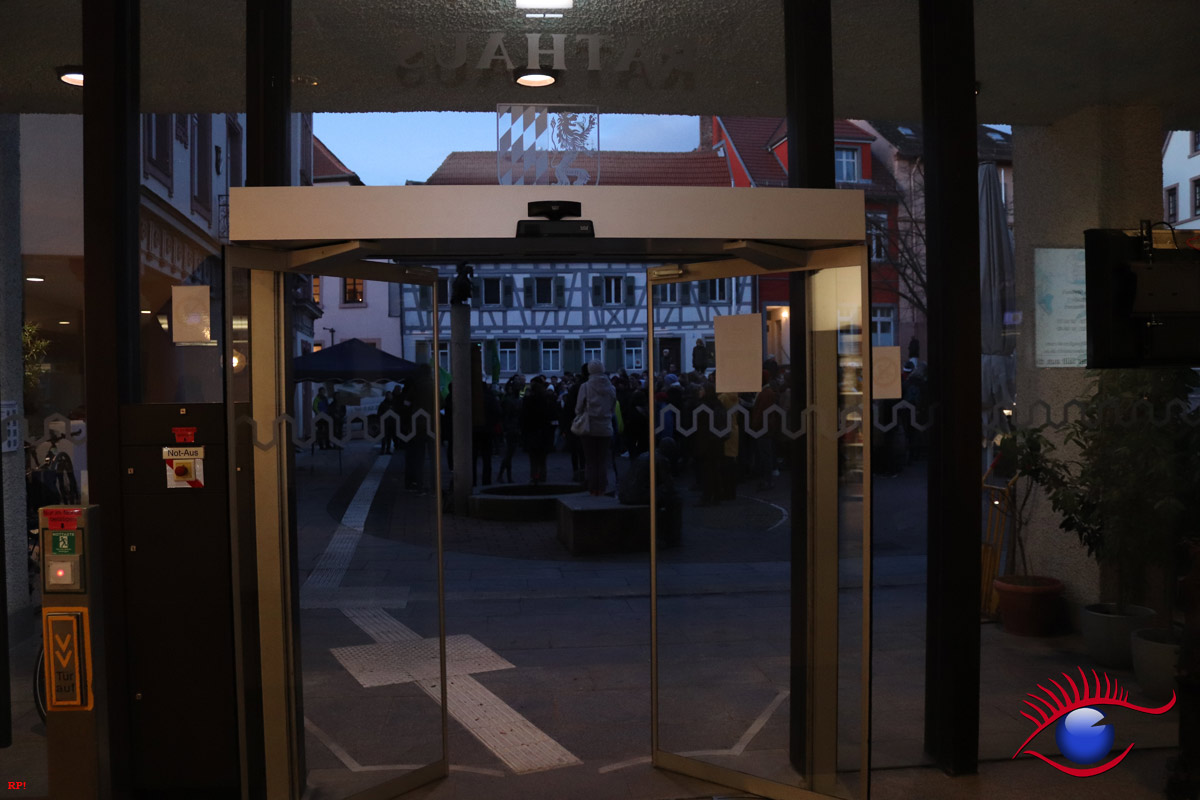 Während der Gemeinderatssitzung vor dem Rathaus