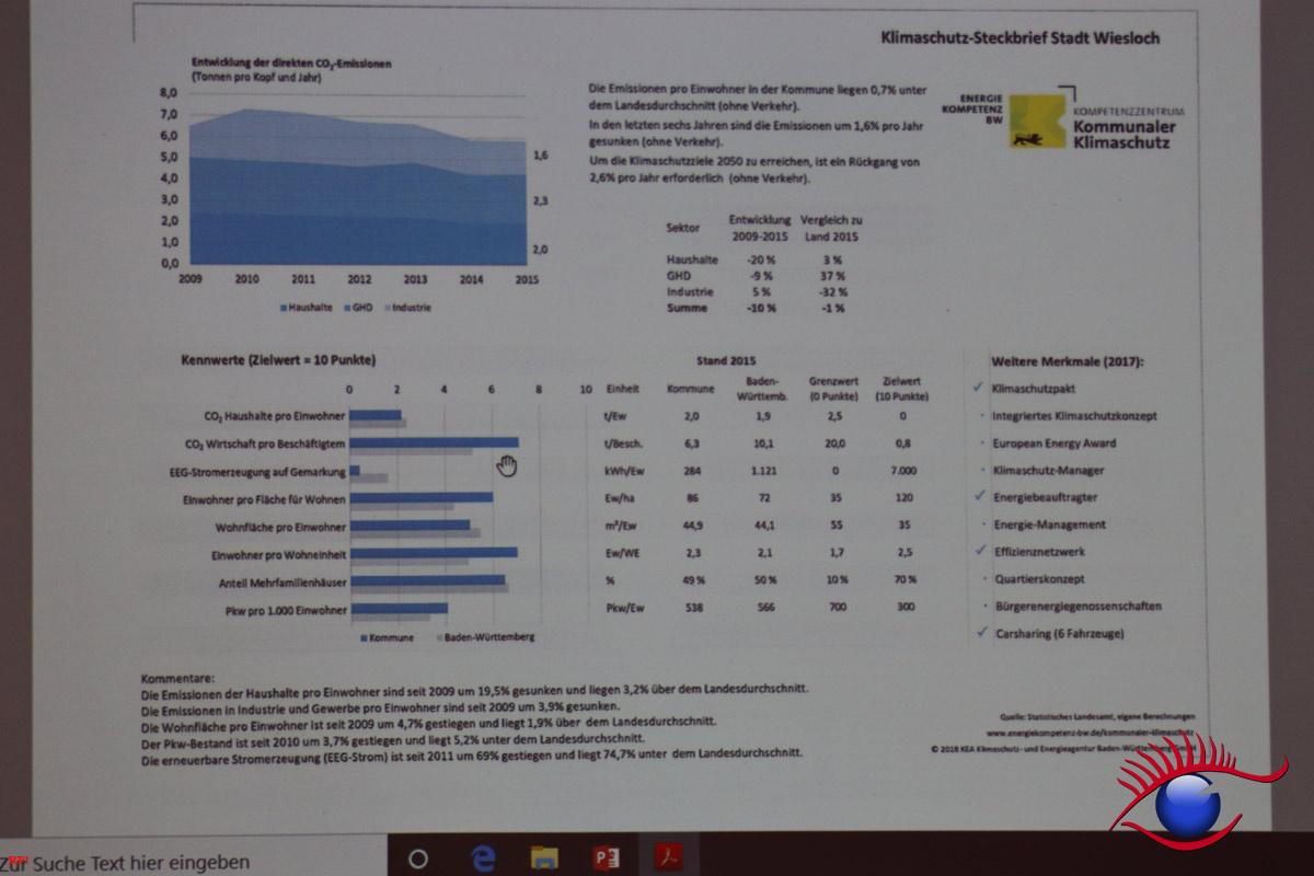 Auf der Internetseite der Stadt Wiesloch ist zu lesen: „Unser Ziel im Bereich Klimaschutz ist nicht die Entwicklung eines Papiers, sondern die Idee gemeinsam mit den Betroffenen zu überlegen, was man in unserer Stadt verändern kann“, so beschrieb der damalige  Oberbürgermeister Franz Schaidhammer das Hauptziel der Klimaschutzkonzeption der Stadt Wiesloch im Jahr 2010.