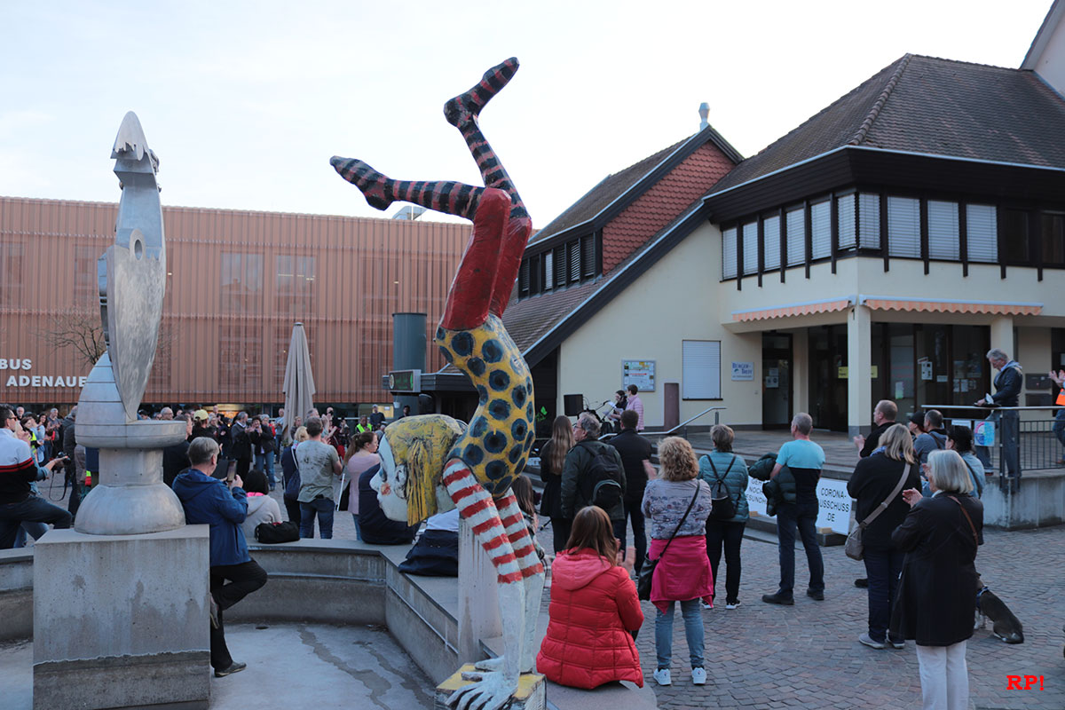 In Wiesloch auf dem Adenauerplatz trat Oberbürgermeister Elkemann in den direkten Dialog mit seinen Bürgern. Den kritischen Bürgern. Den Bürgern und Bürgerinnen, welche sich an den Montagsspaziergängen der vergangenen Wochen beteiligt hatten. Die wirkliche Schule der Demokratie ist die Kommunalpolitik, wies sich bei dieser Kundgebung zeigte.