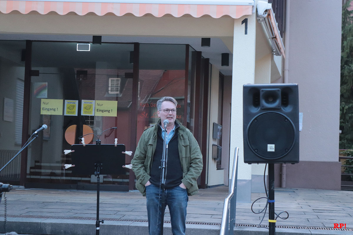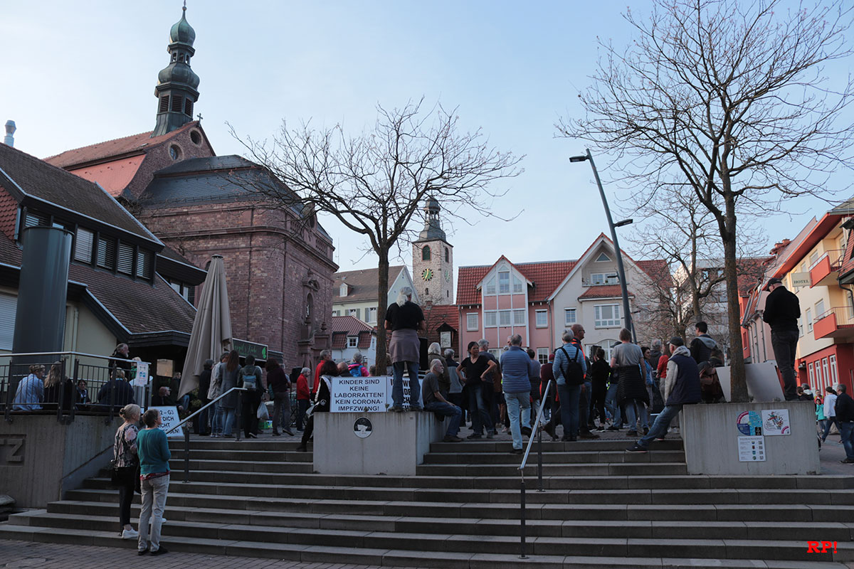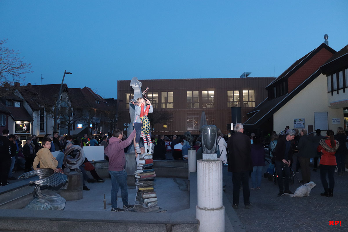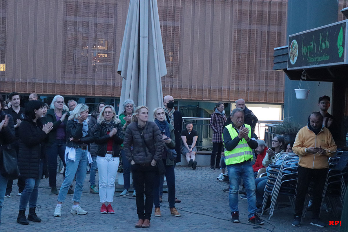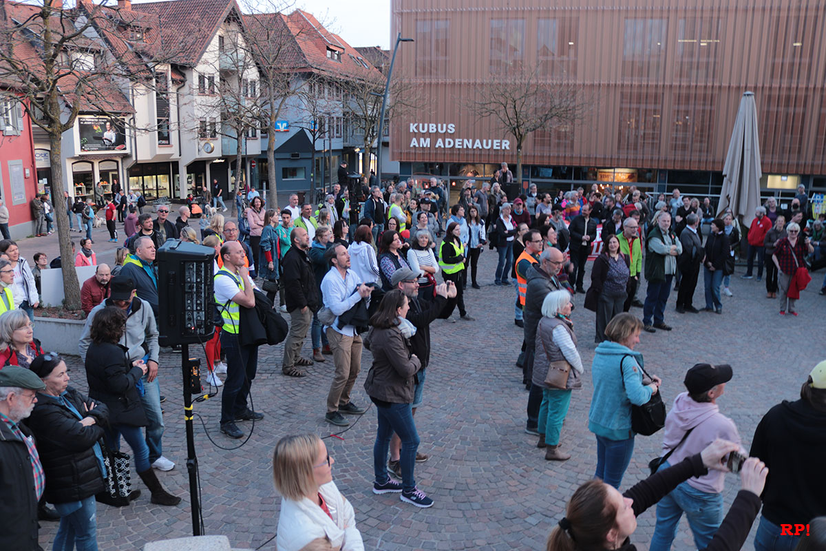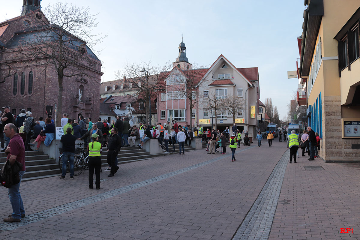 „Ich finde es mutig, dass der Bürgermeister von Wiesloch Herr Elkemann heute auch hier ist“ so der Hauptredner der Kundgebung Dr. Frank aus Heidelberg zu Beginn seiner Rede. Diese Aussage würdigten die Demonstranten mit Beifall.